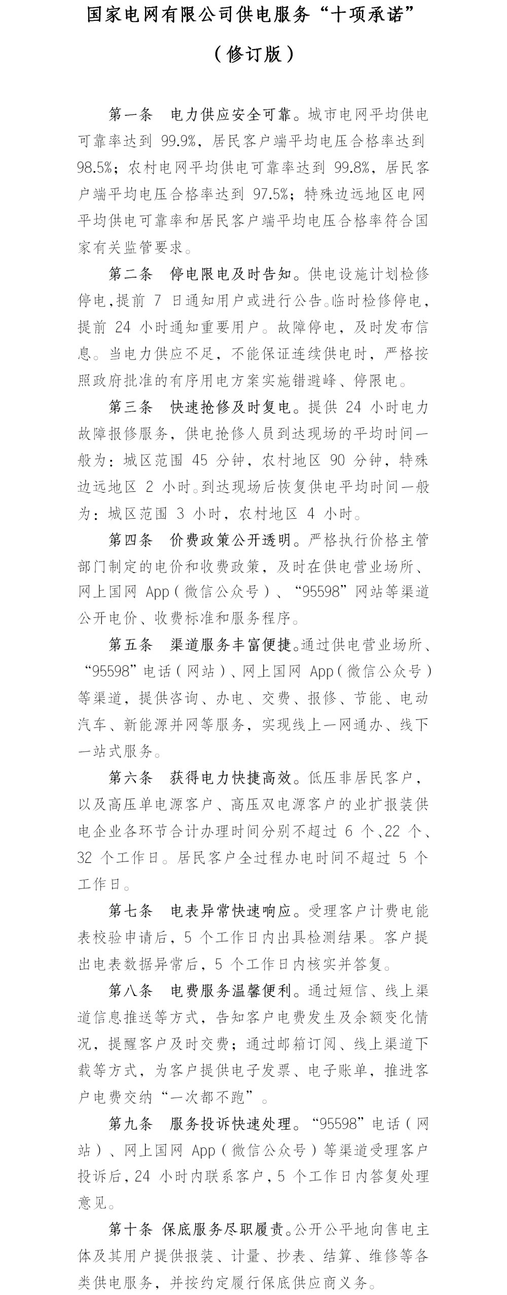 國家電網有限公司供電服務“十項承諾”(修訂版)