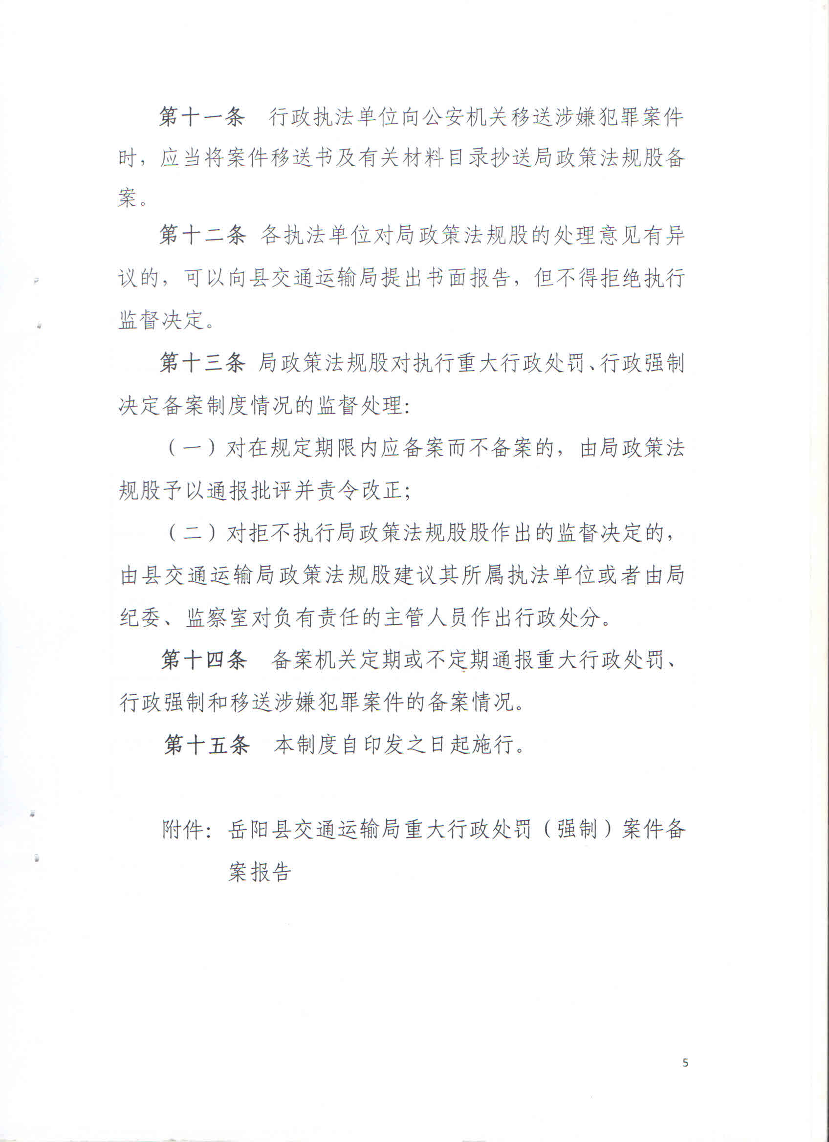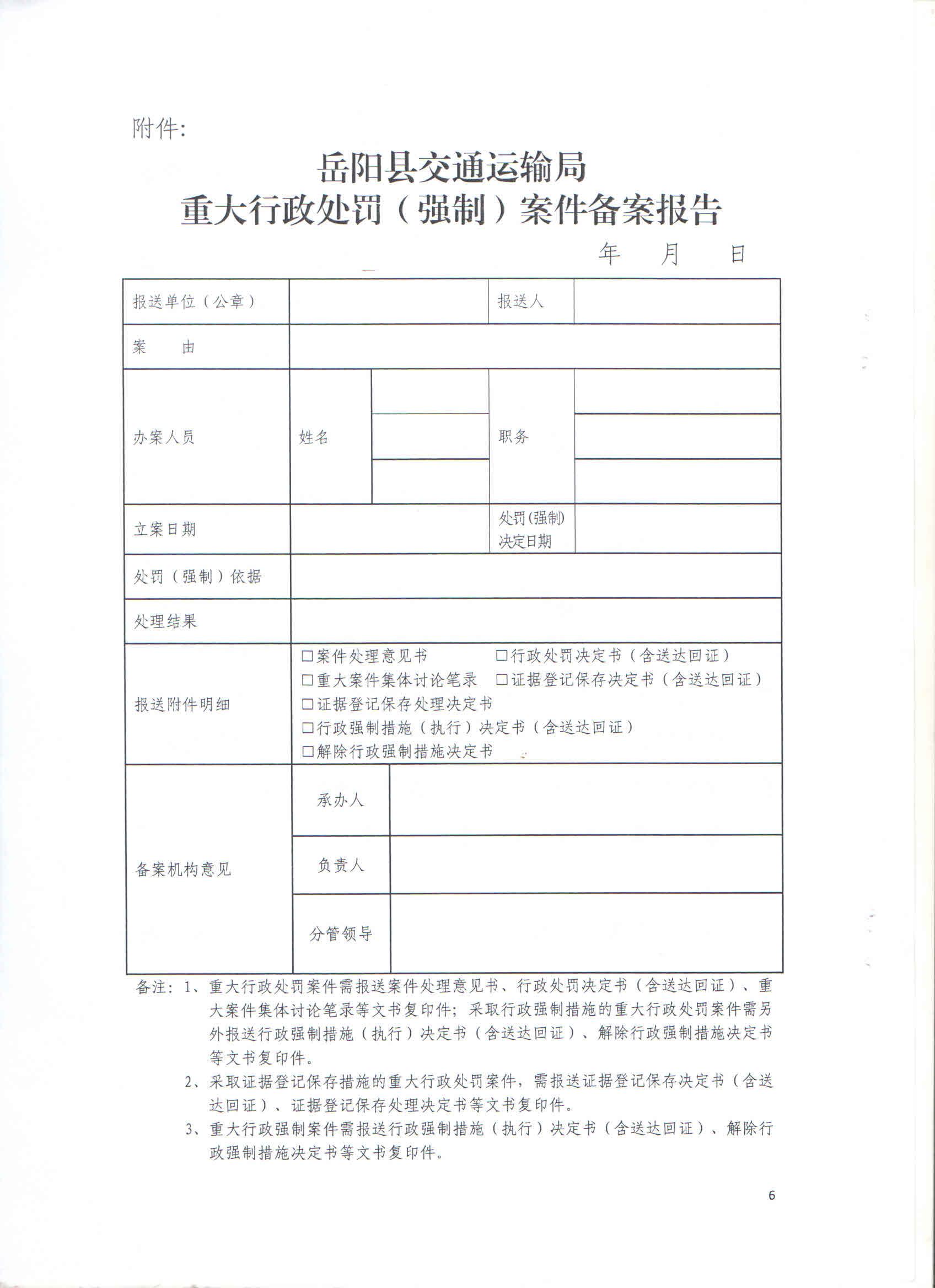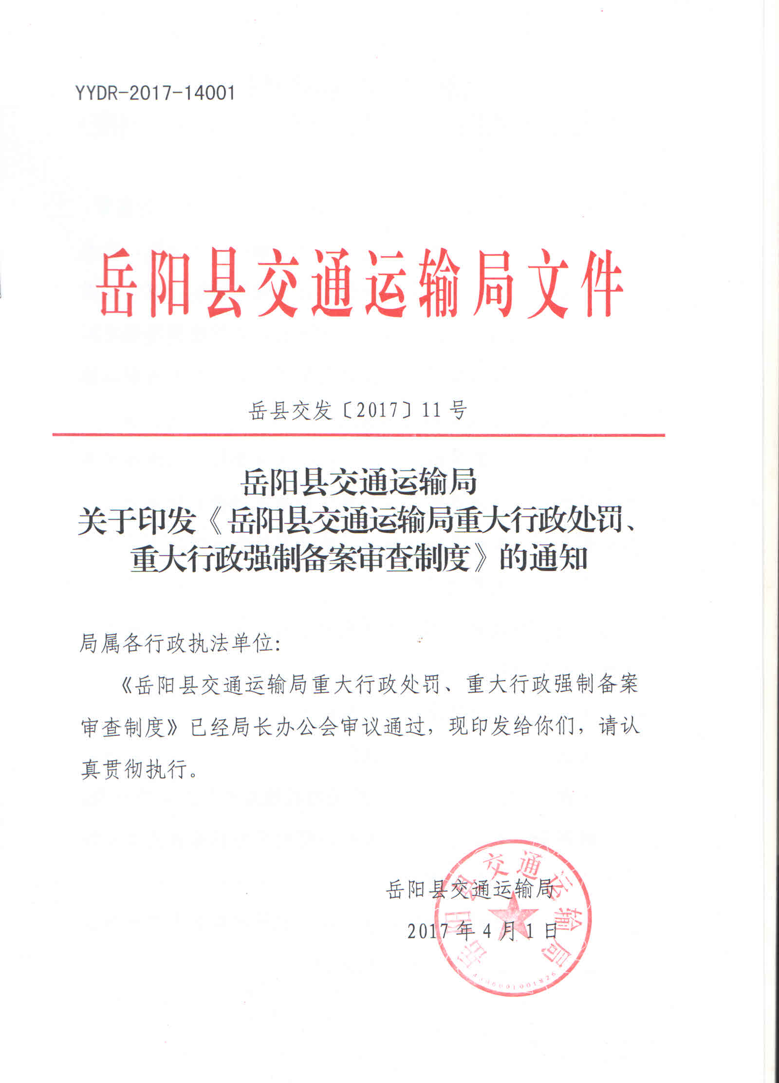 嶽陽縣交通運輸局重大行政處罰重大行政強製備案審查製度