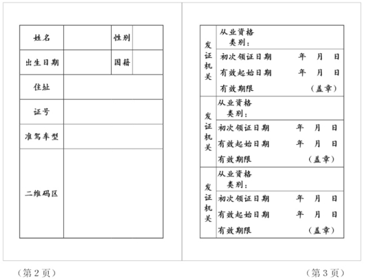 5.第3頁發證機關欄中,每欄的從業資格類別打印1類從業資格類別漢字全稱,示例:經營性道路旅客運輸駕駛員。每證不超過3類從業資格類別,按取得從業資格的先後順序由上到下依次打印。