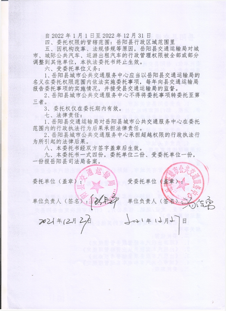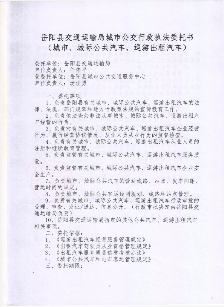 嶽陽縣交通運輸局城市公交行政執法委托書(2022年)