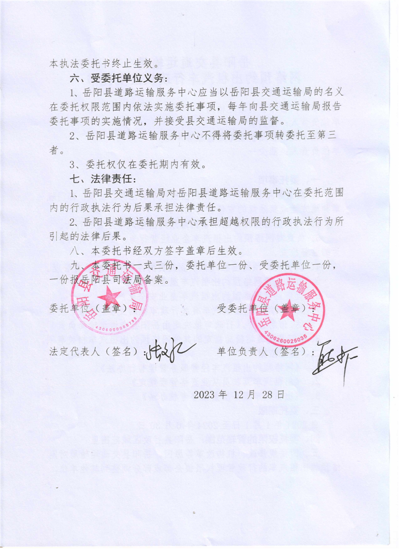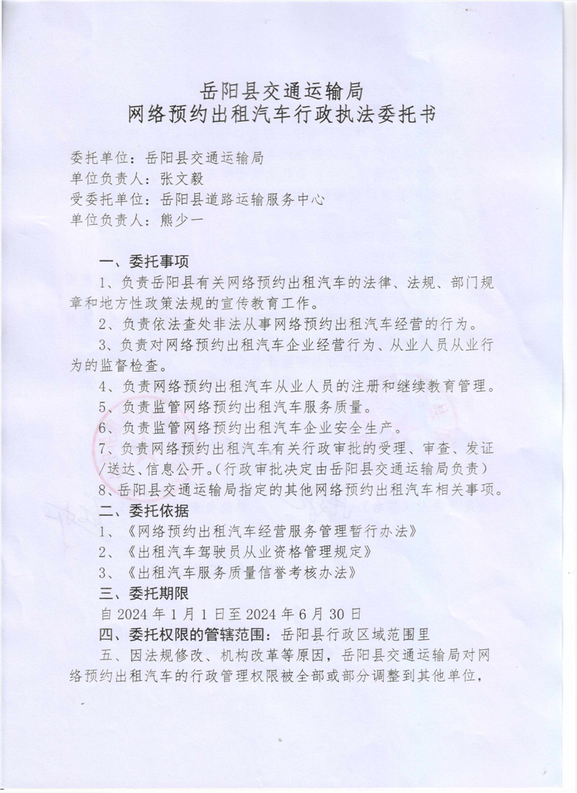 嶽陽縣交通運輸局網絡預約出租汽車行政執法委托書