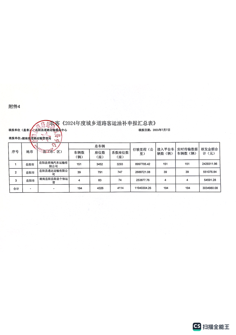2025年發放2024年度嶽陽縣城鄉道路客運油補