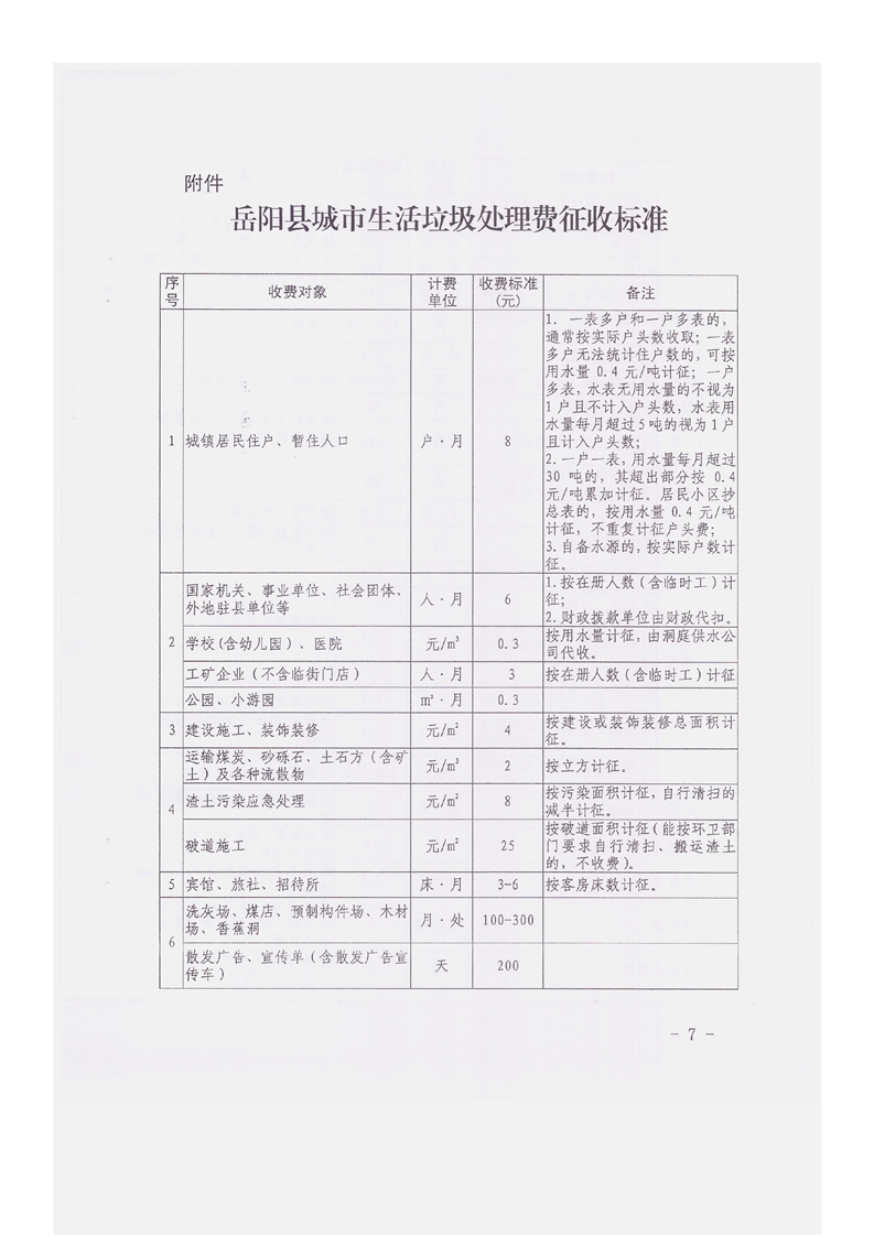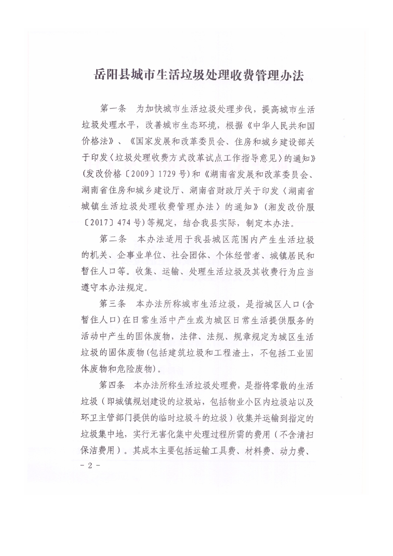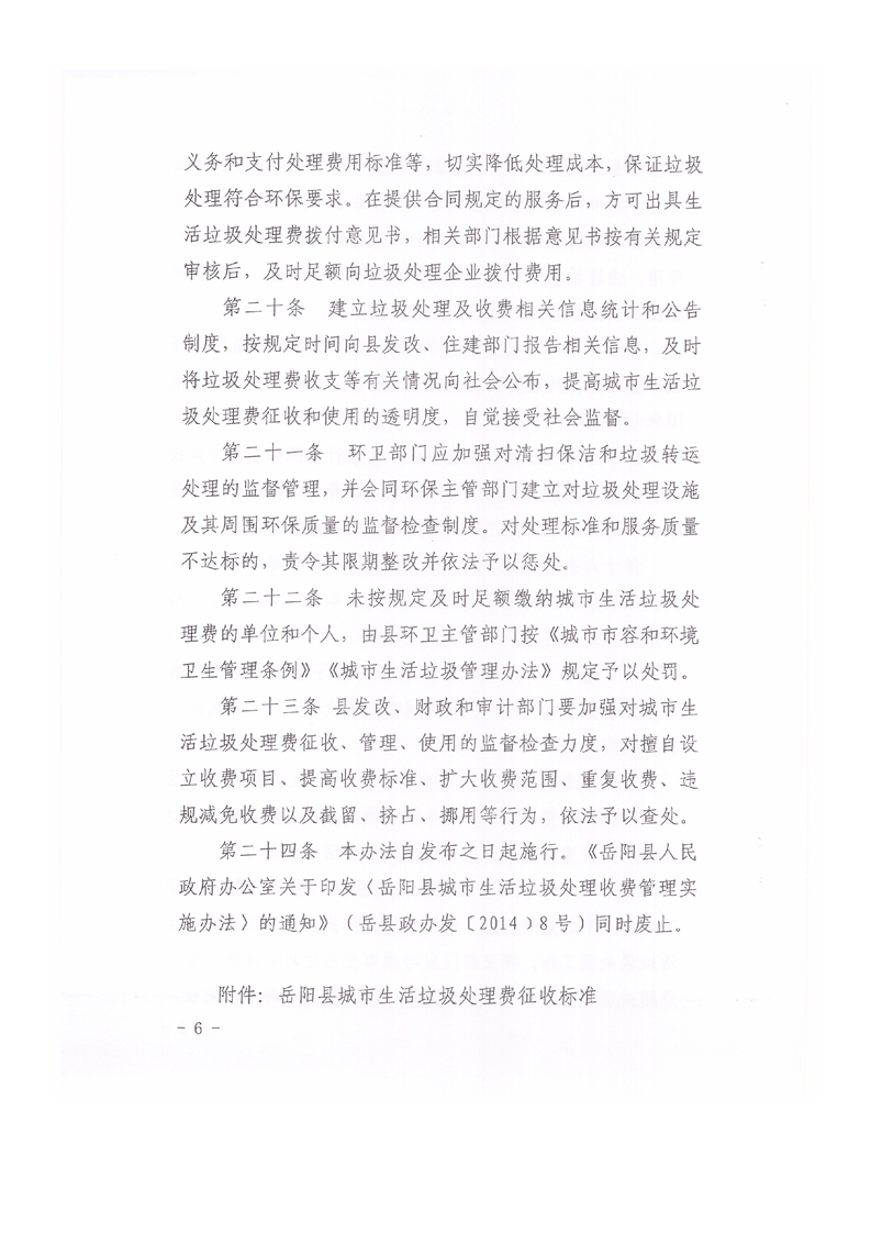 關於印發《嶽陽縣城市生活垃圾處理收費管理辦法》的通知