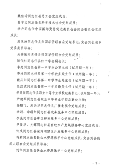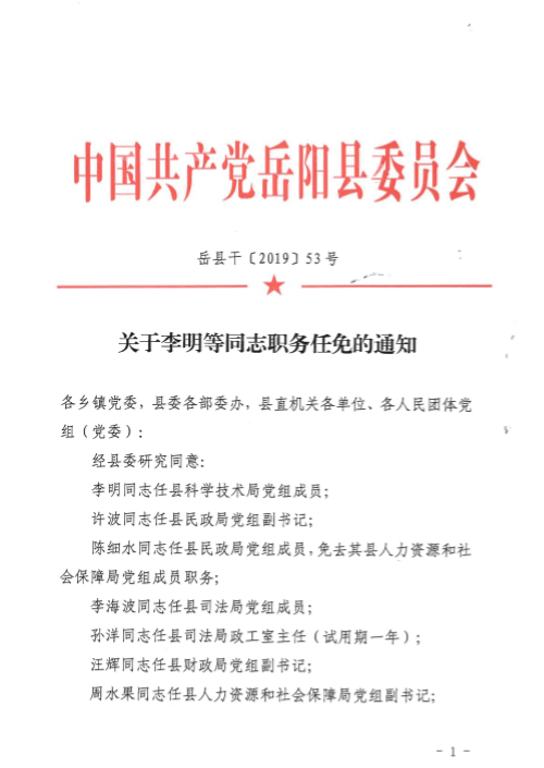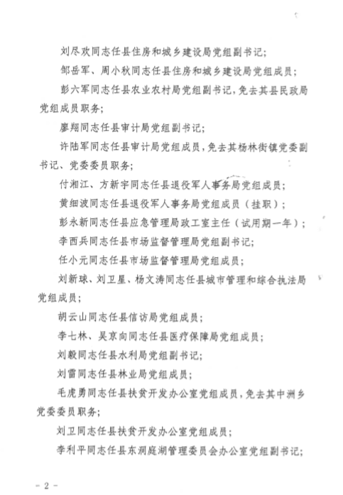 關於嶽陽縣委縣政府對住建局班子成員任免的通知