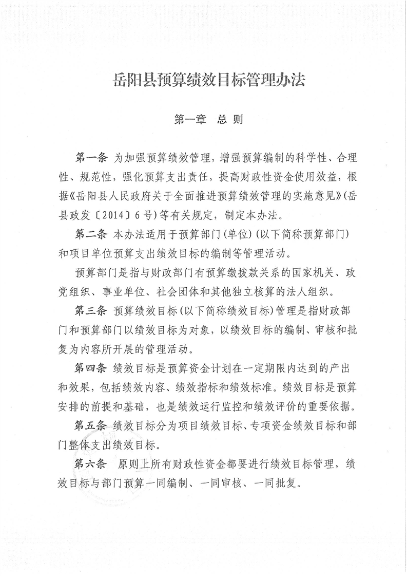 嶽陽縣財政局關於印發《嶽陽縣預算績效目標管理辦法》的通知