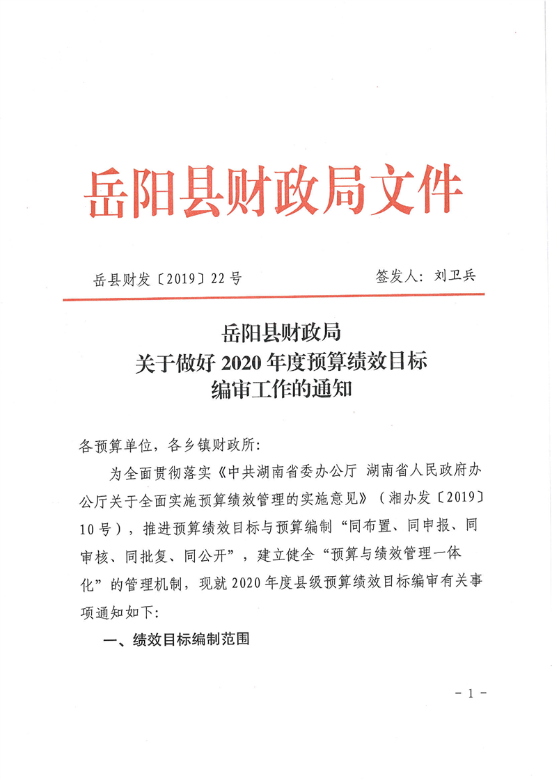 關於編製2020年縣直部門預算績效目標編審工作的通知
