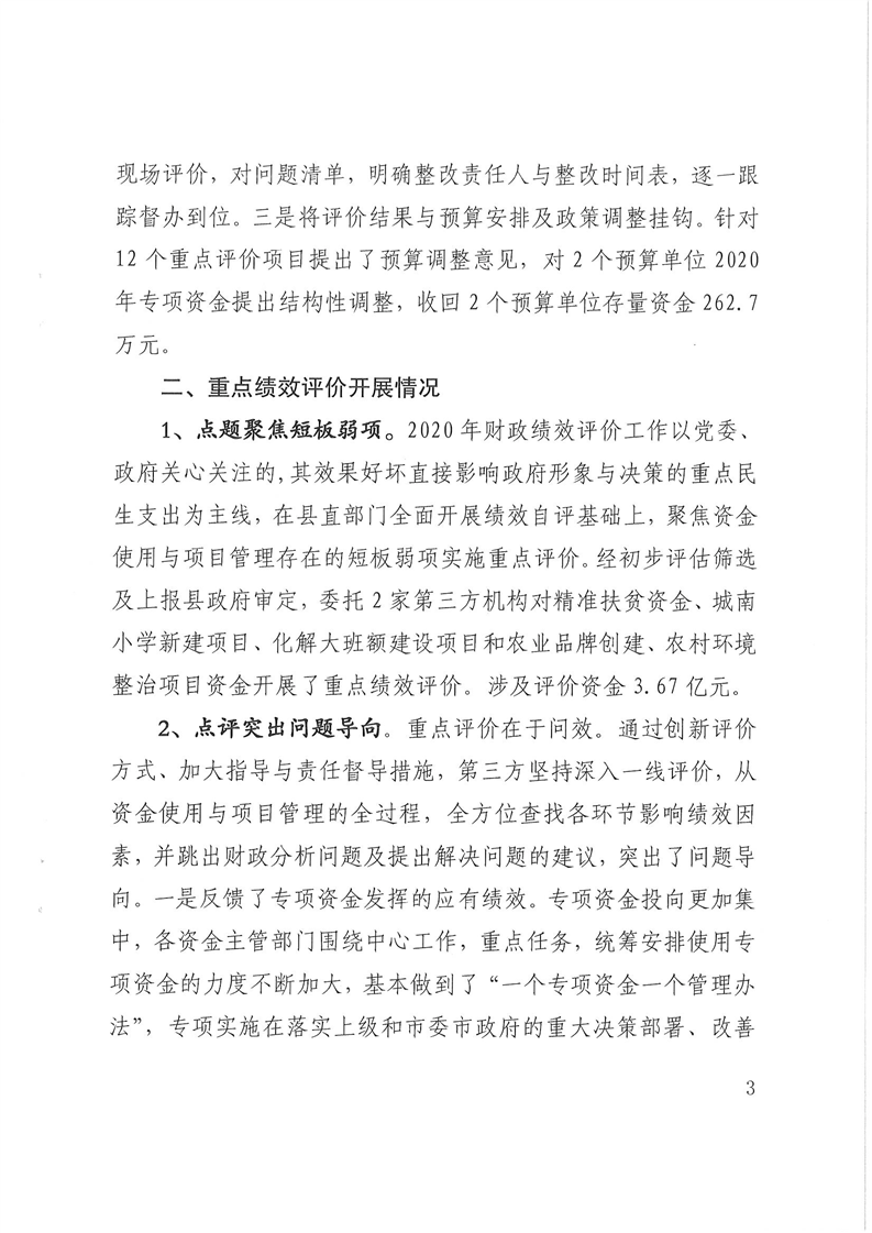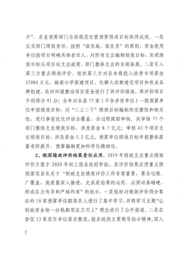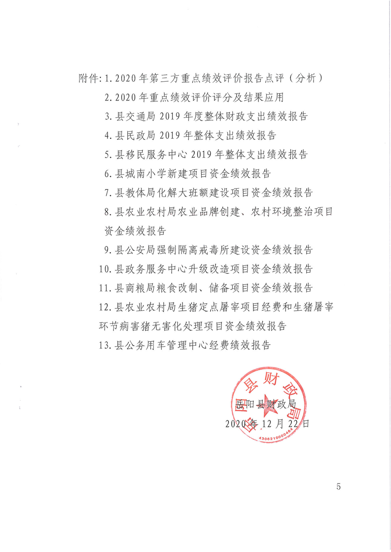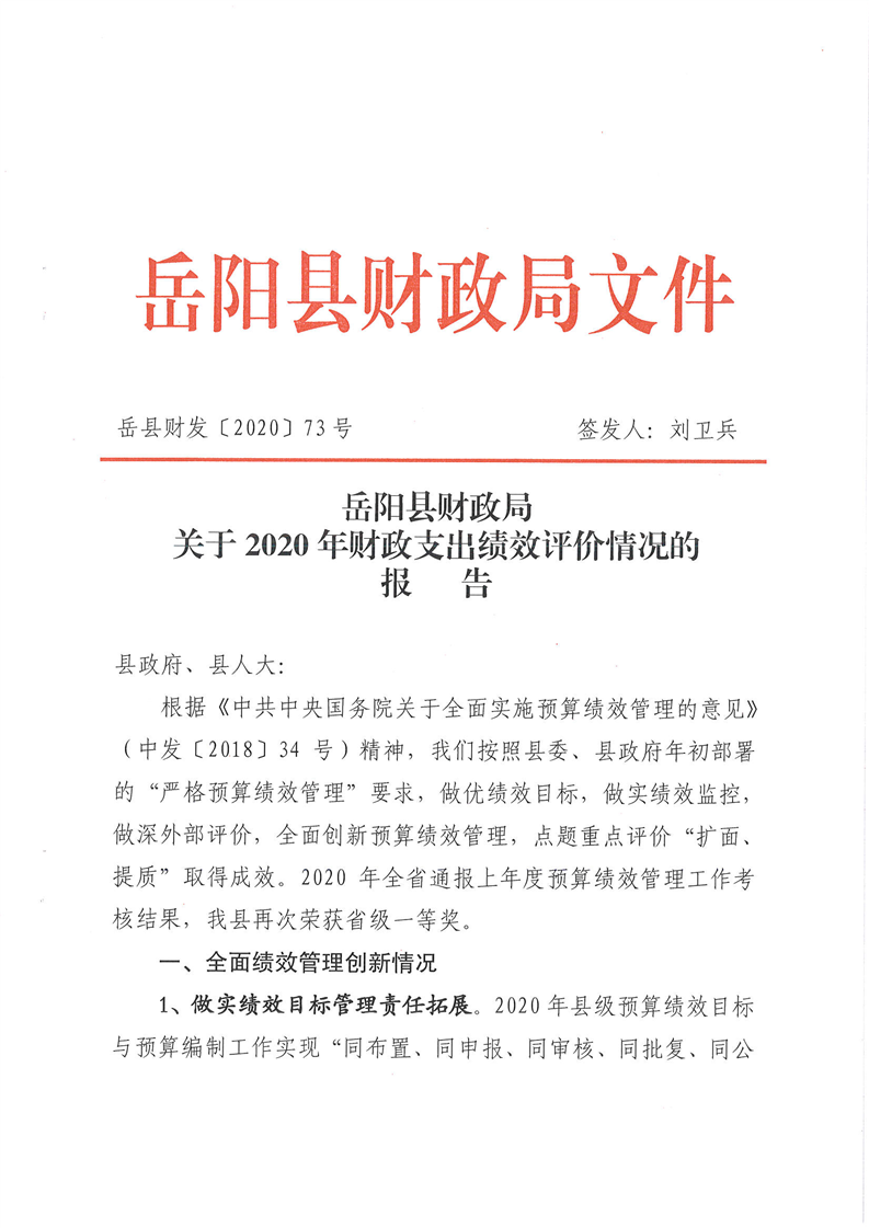嶽陽縣財政局關於2020年財政支出績效評價情況的報告