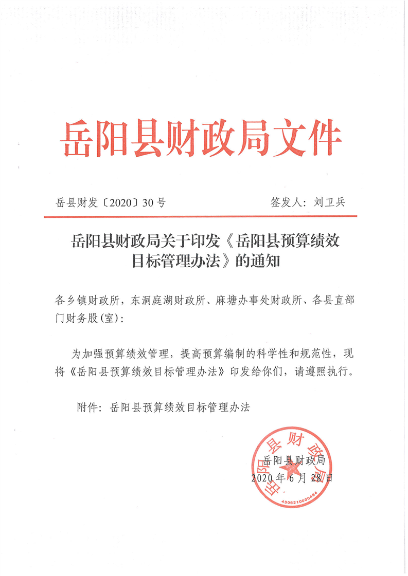 嶽陽縣財政局關於印發《嶽陽縣預算績效目標管理辦法》的通知