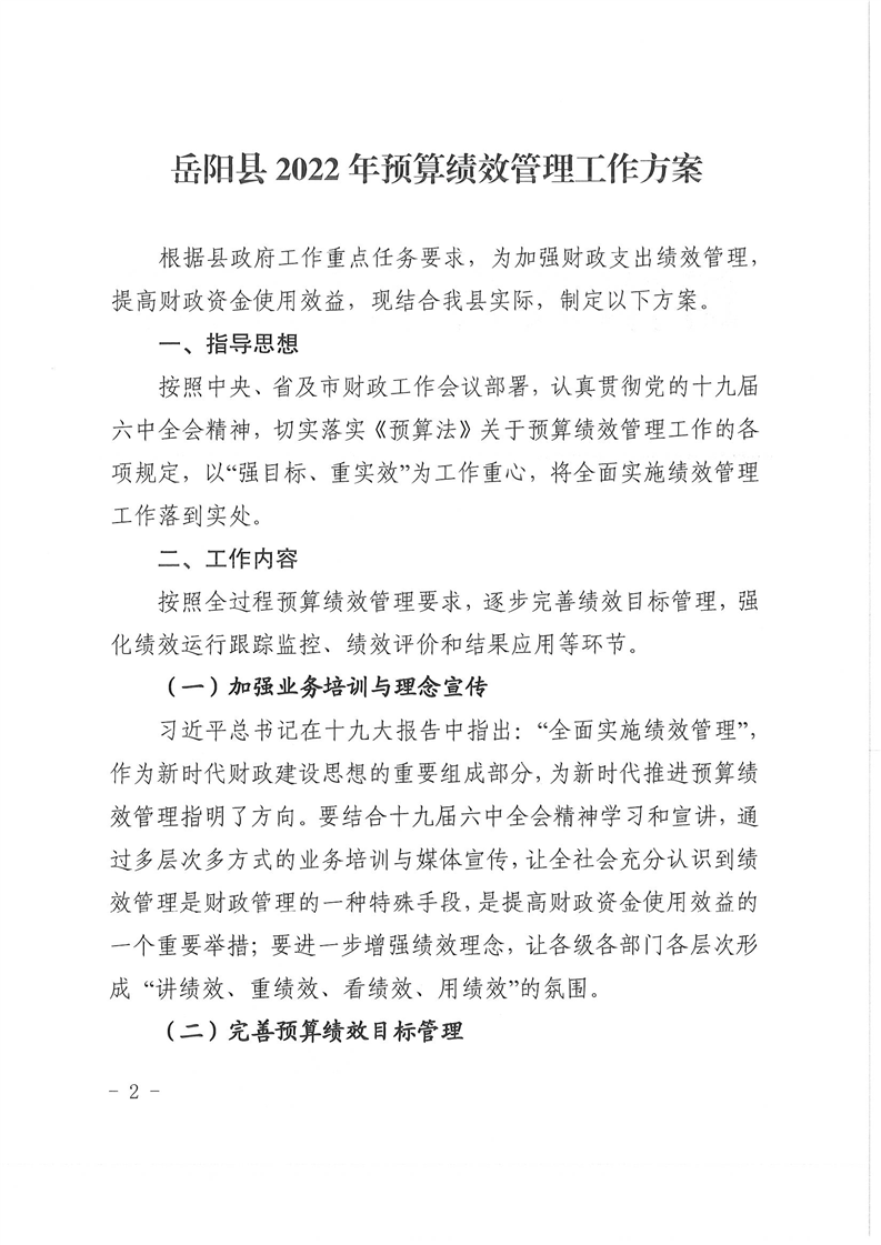 嶽陽縣財政局關於印發《2022年預算績效管理工作方案》的通知