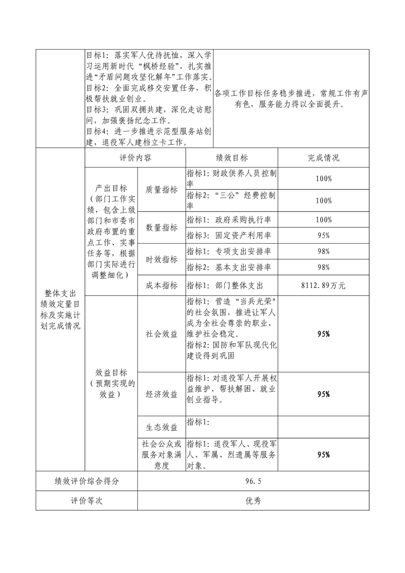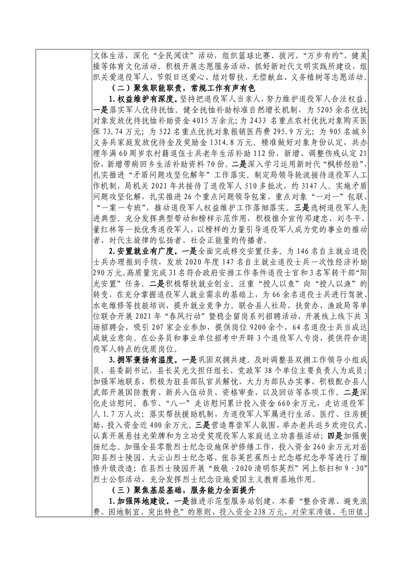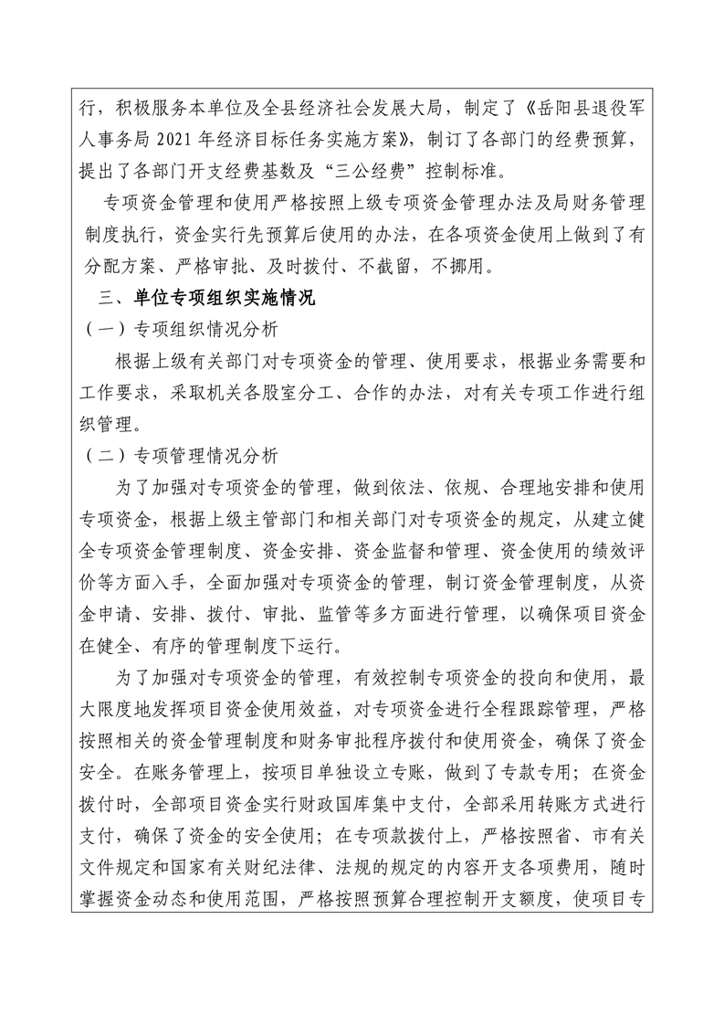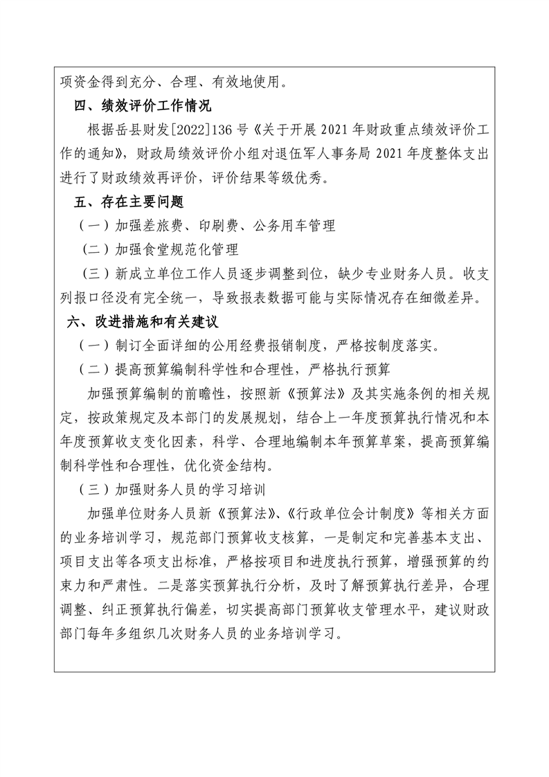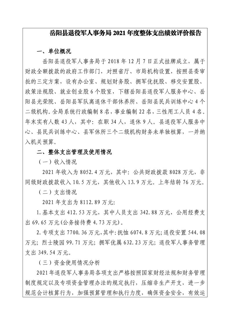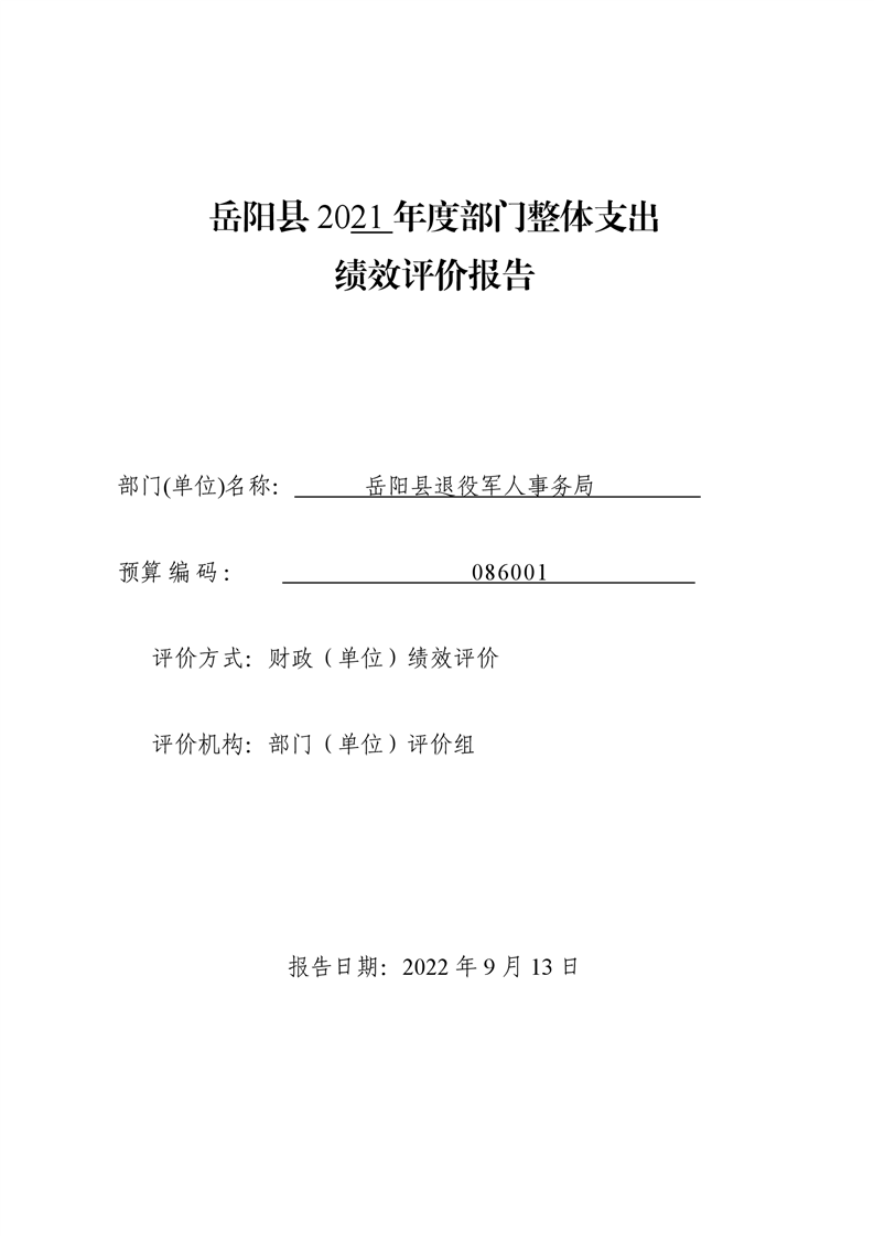 嶽陽縣2021年度部門整體支出 績效評價報告(嶽陽縣退役軍人事務局)