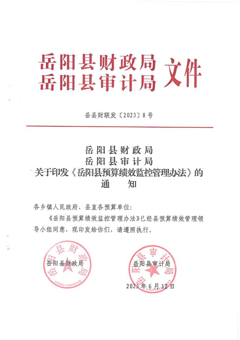 嶽陽縣財政局嶽陽縣審計局關於印發《嶽陽縣預算績效監控管理辦法》的通知