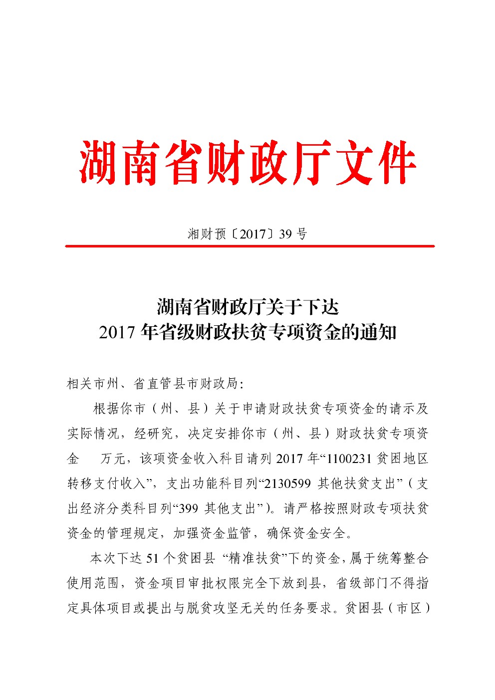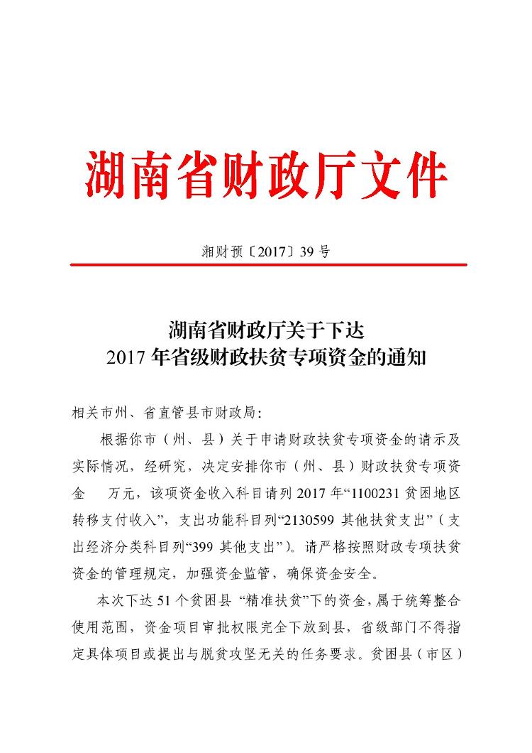 關於下達2017年省級財政扶貧專項資金的通知