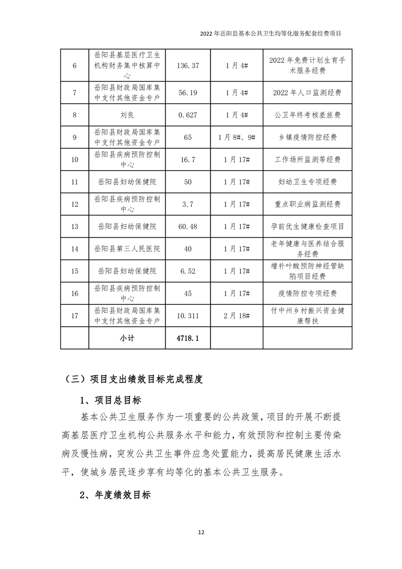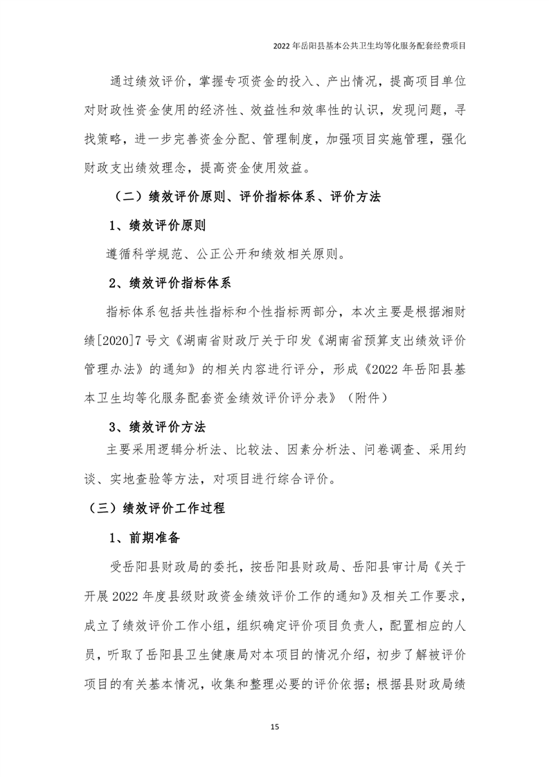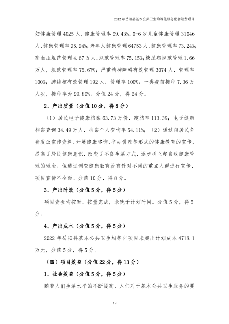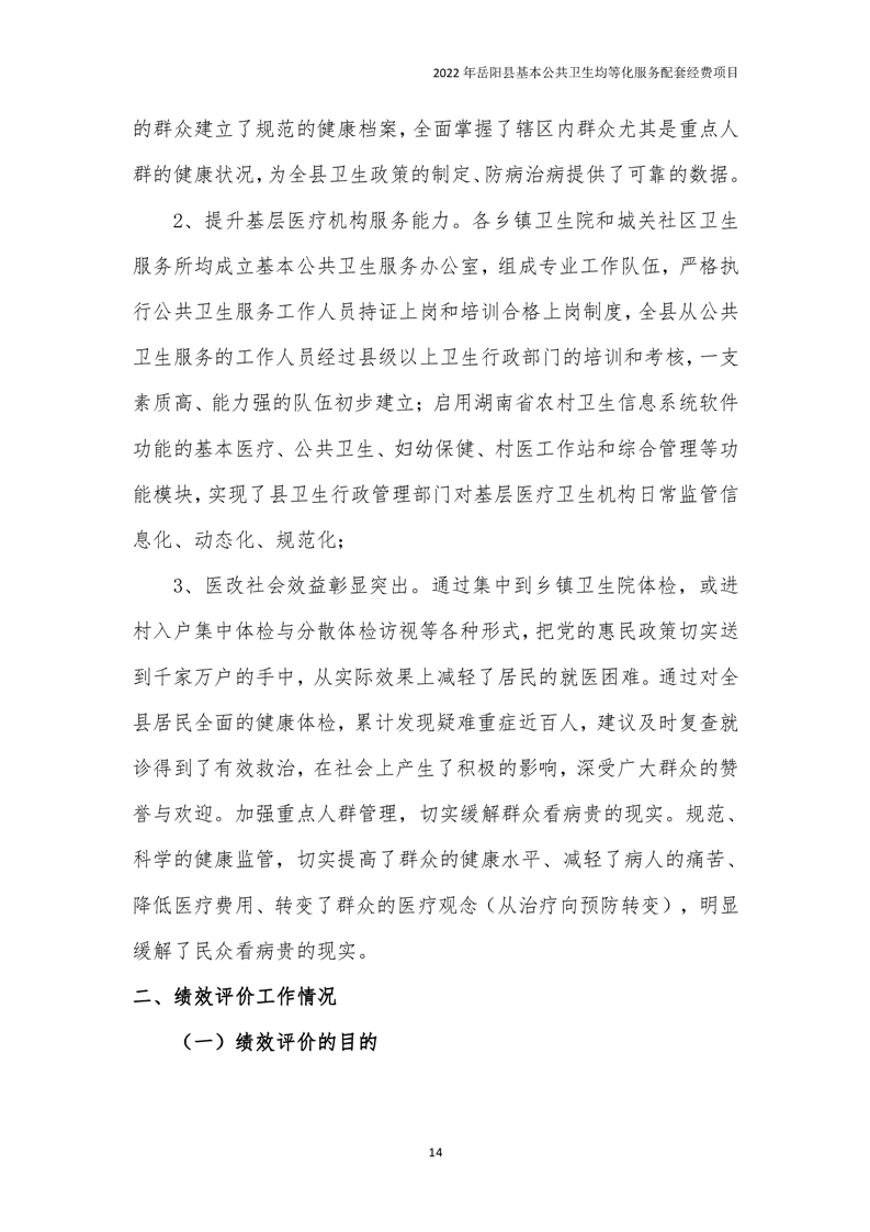 2022年嶽陽縣基本公共衛生均等化服務項目績效評價報告