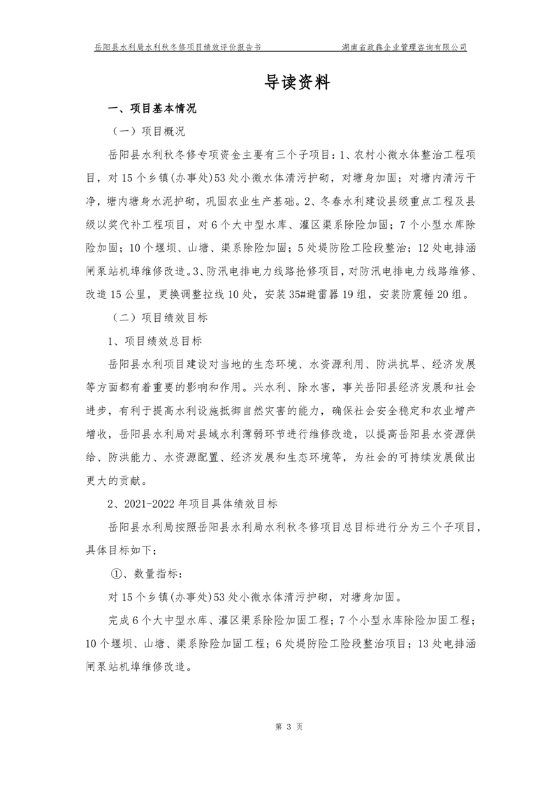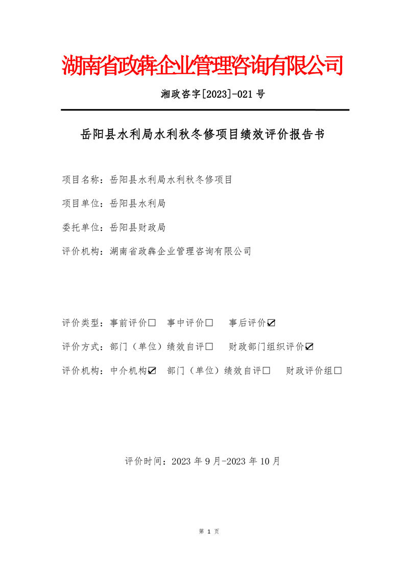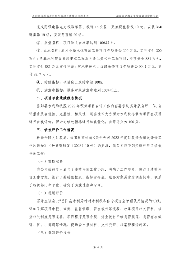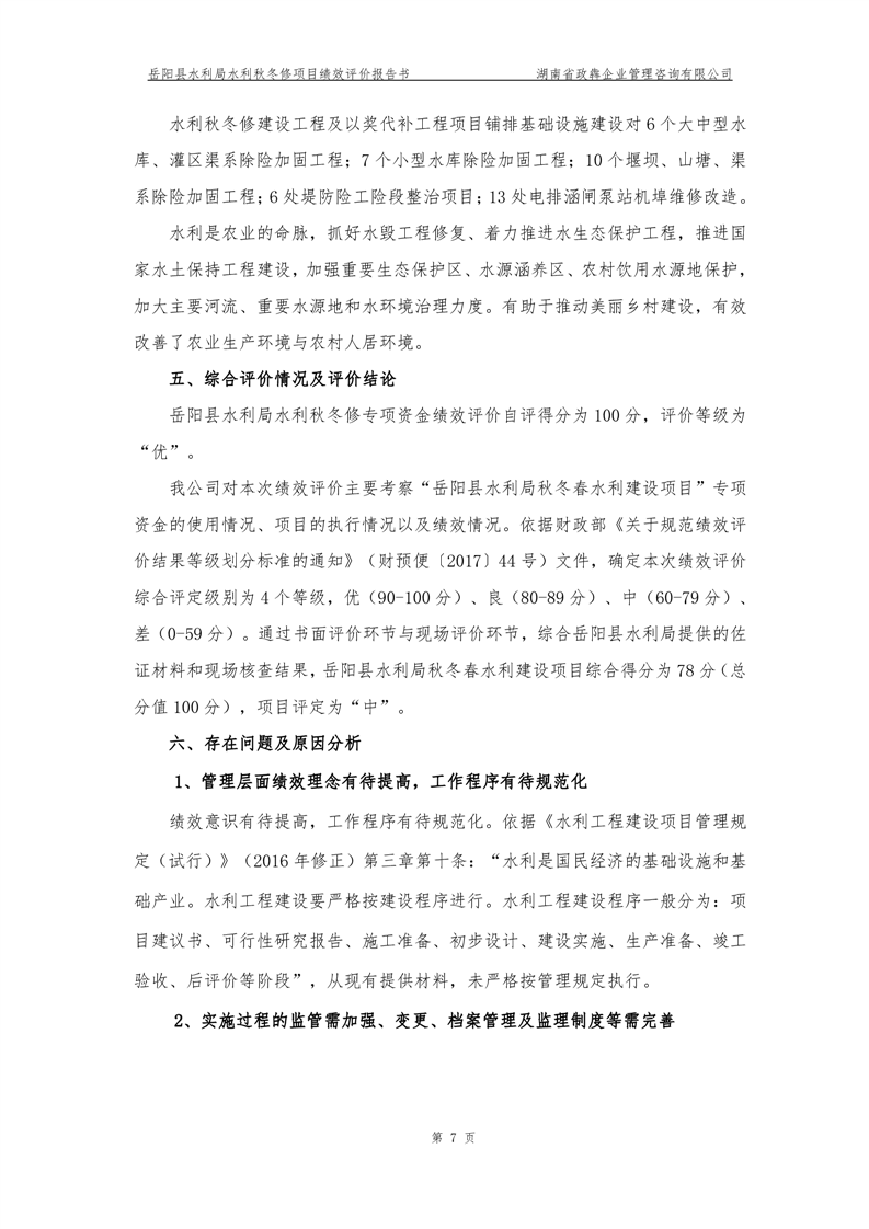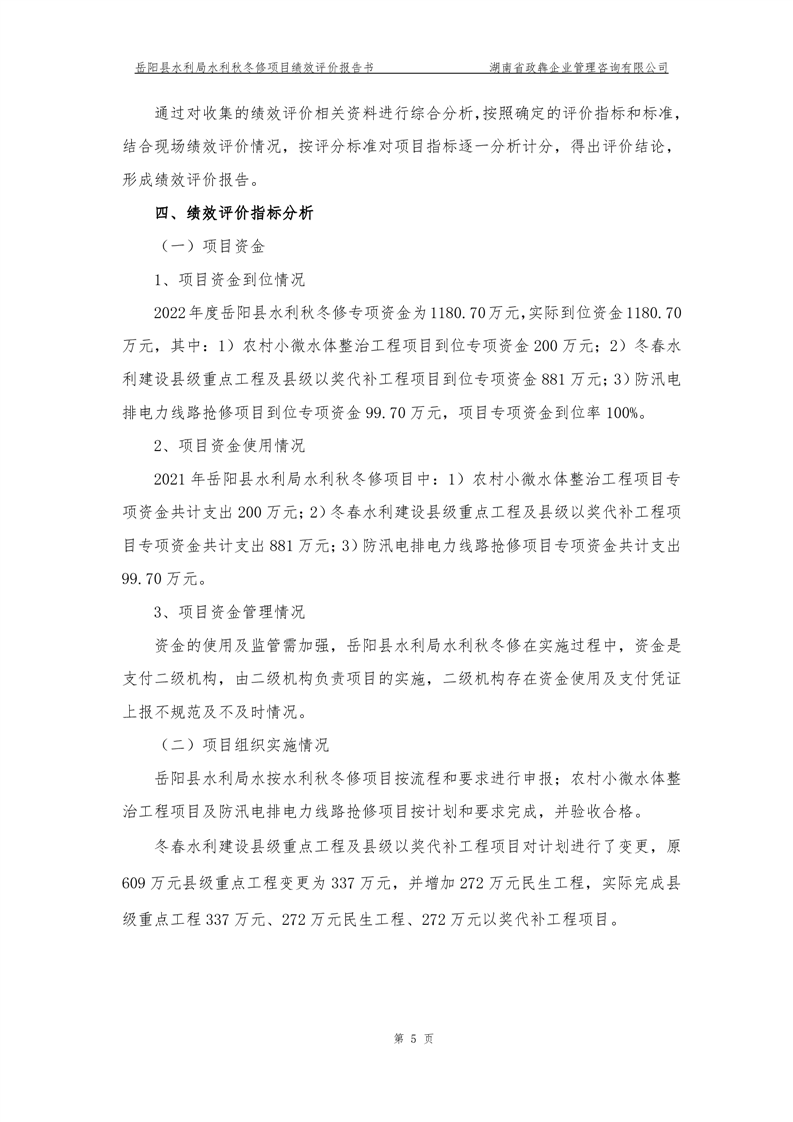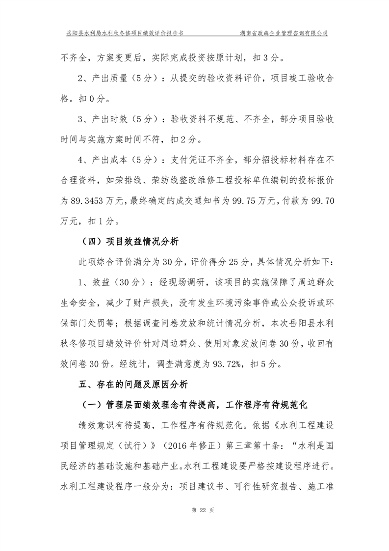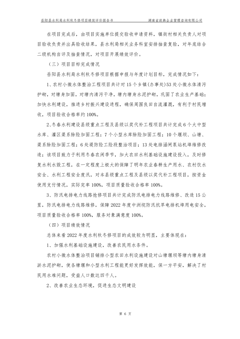 2022年嶽陽縣水利局水利秋冬修績效評價報告