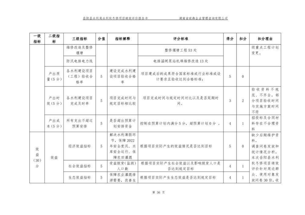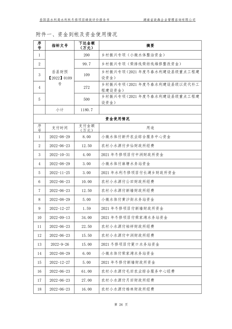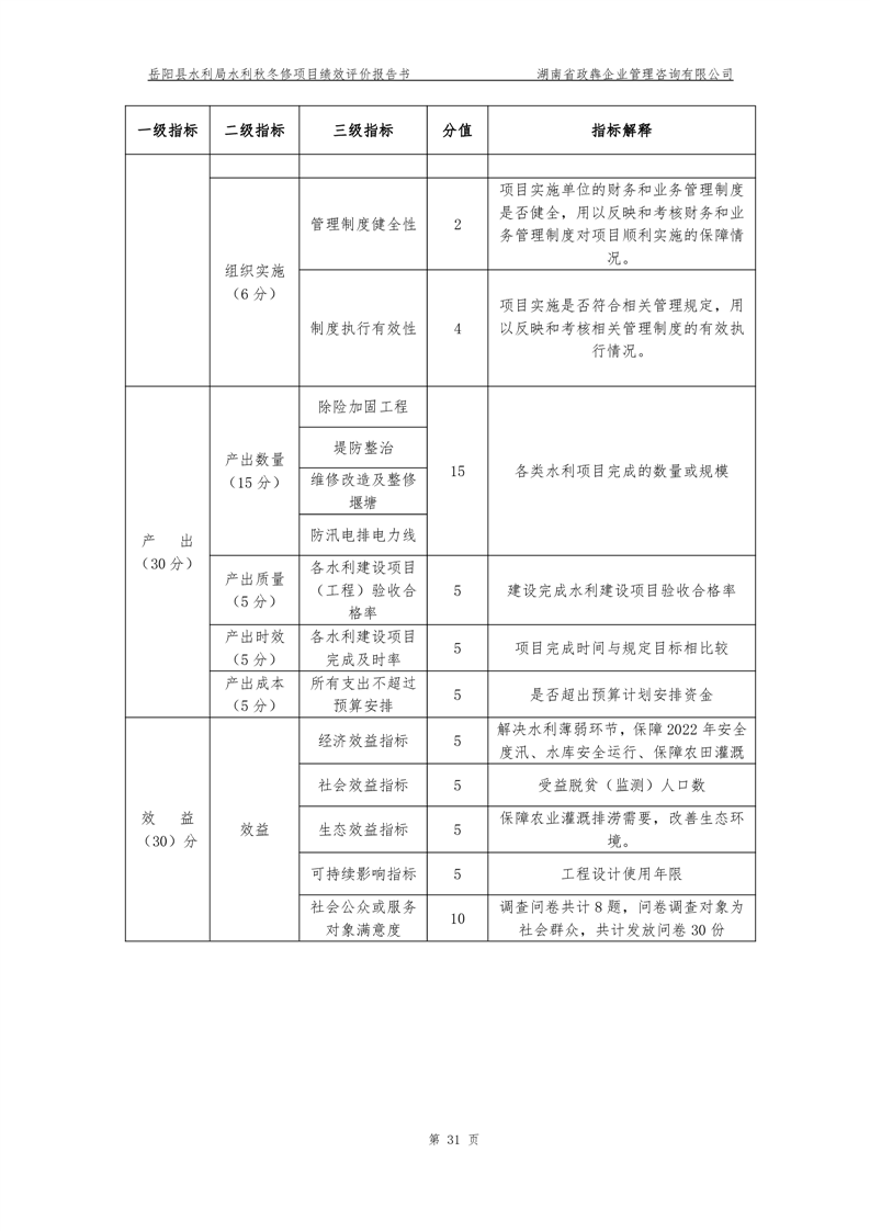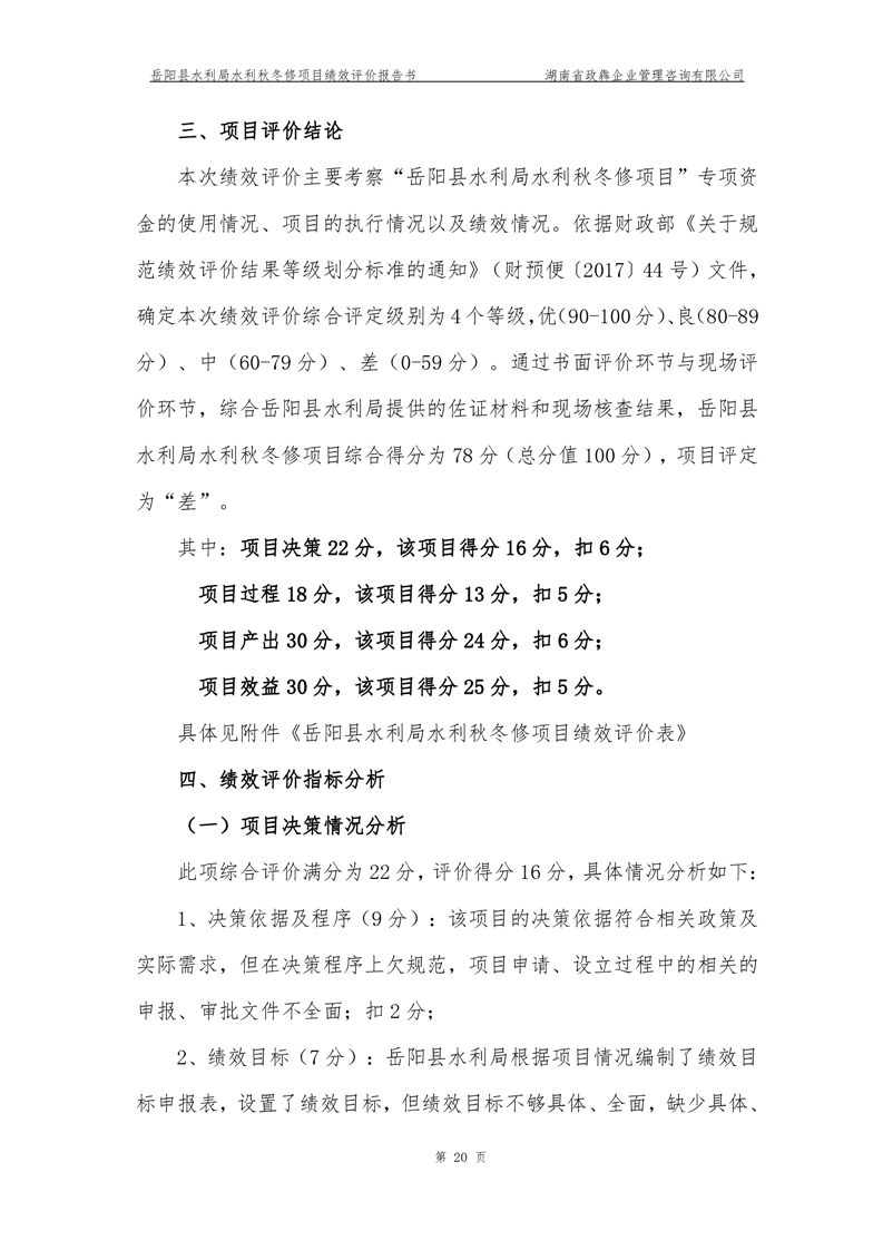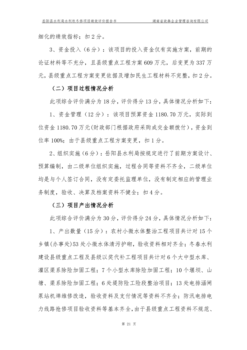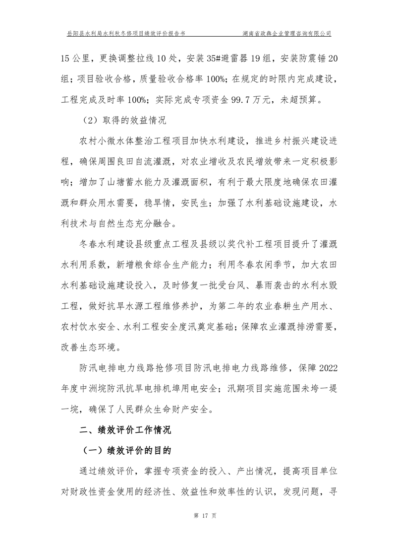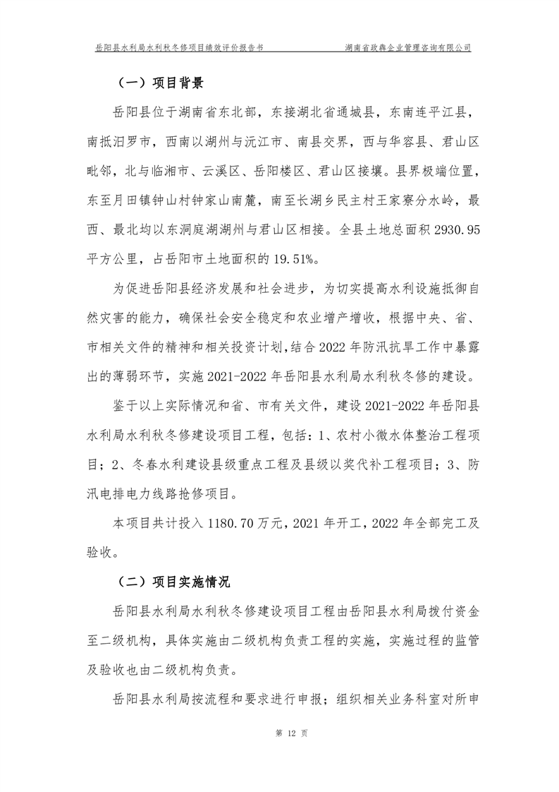 2022年嶽陽縣水利局水利秋冬修績效評價報告