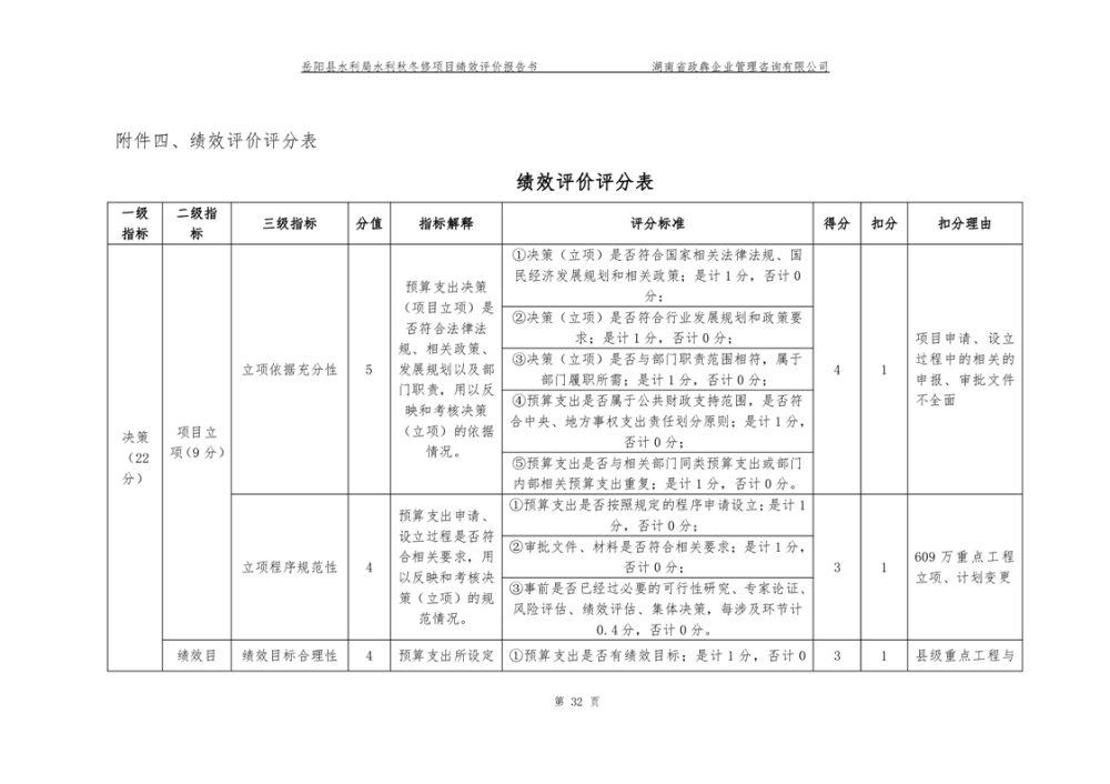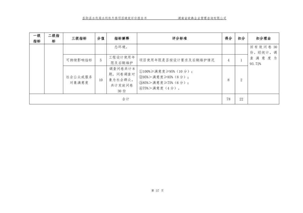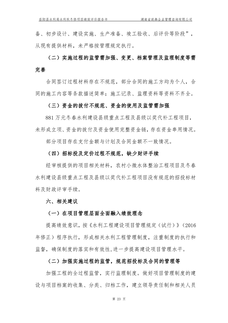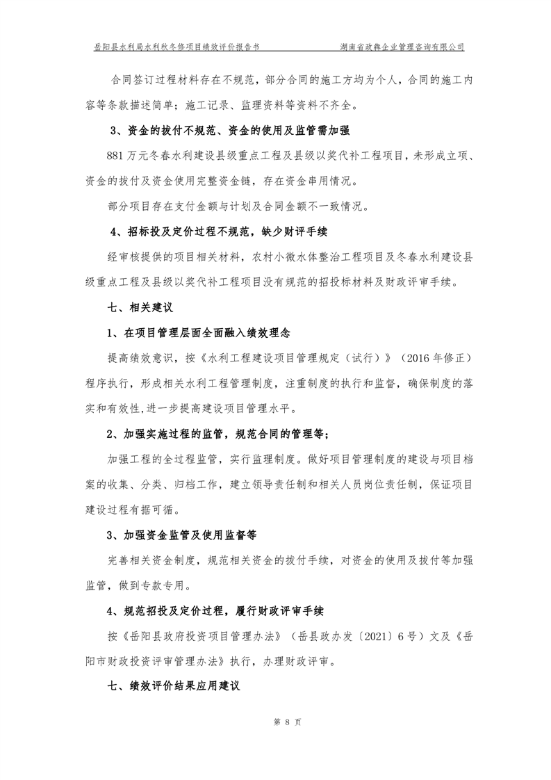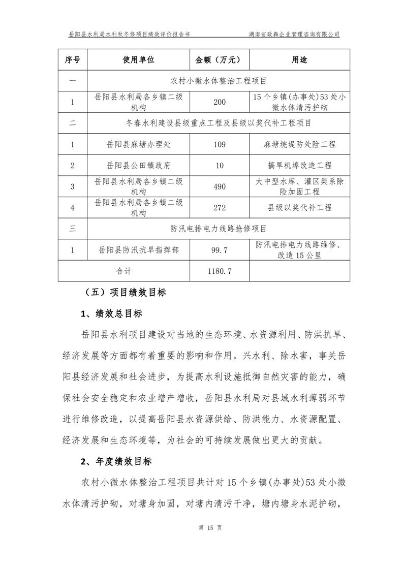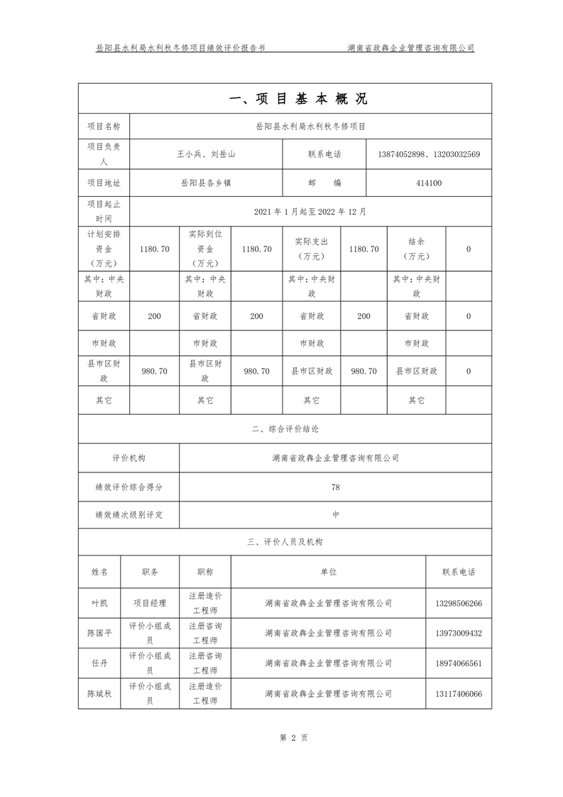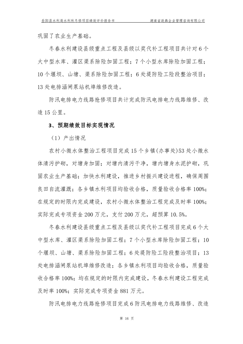 2022年嶽陽縣水利局水利秋冬修績效評價報告