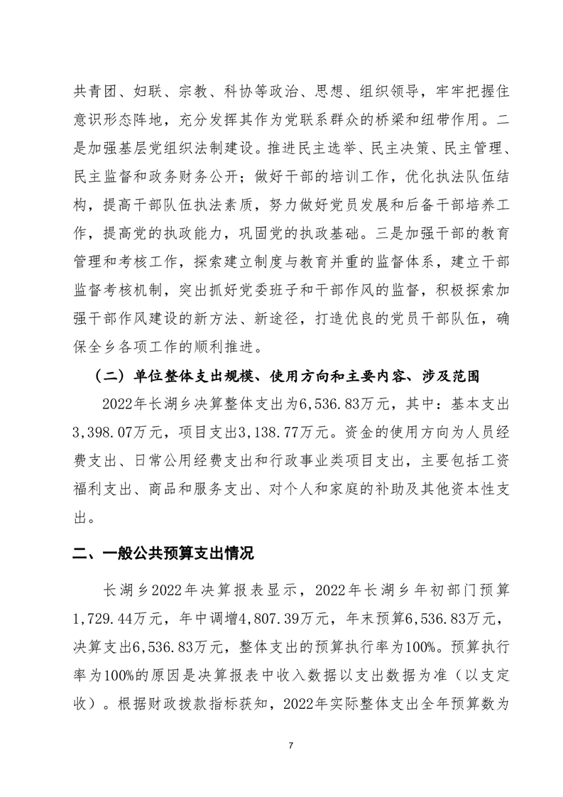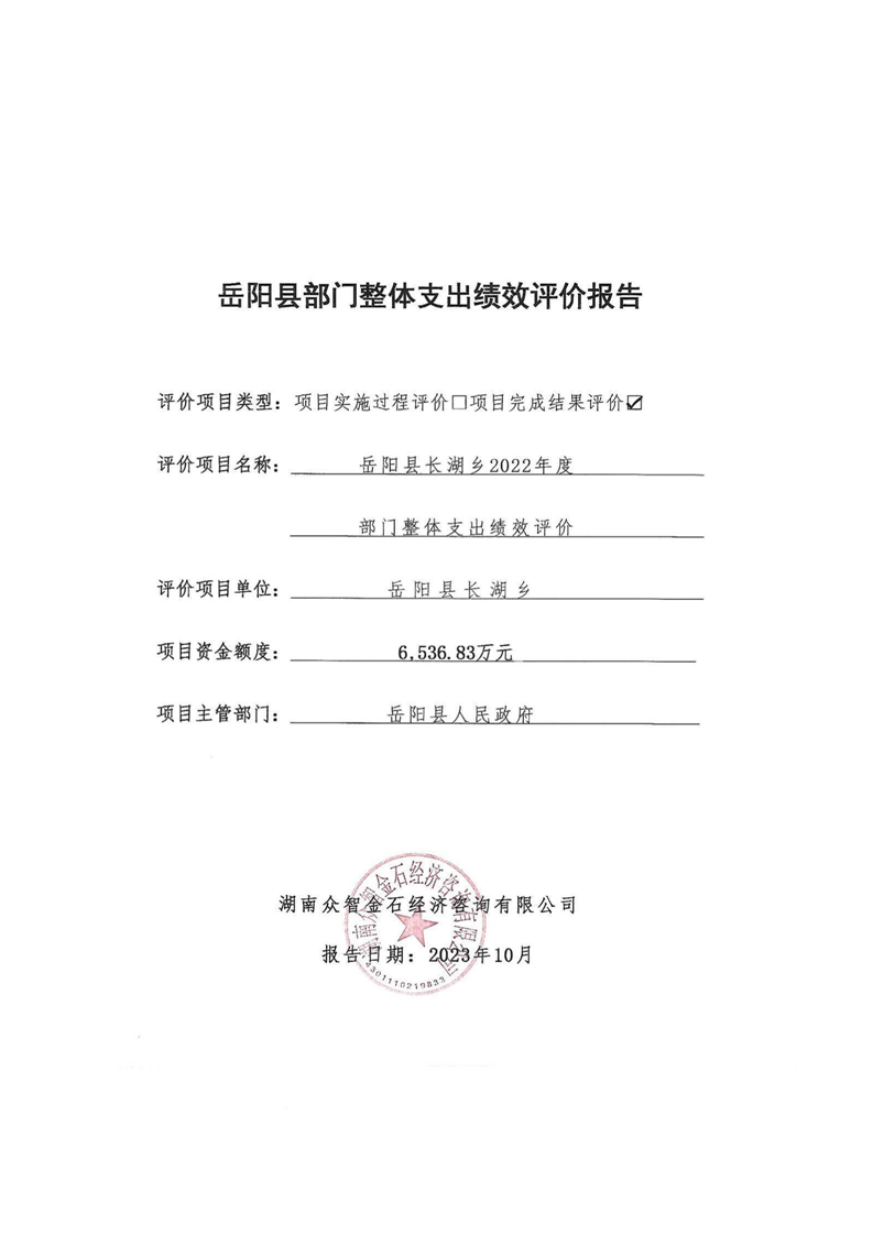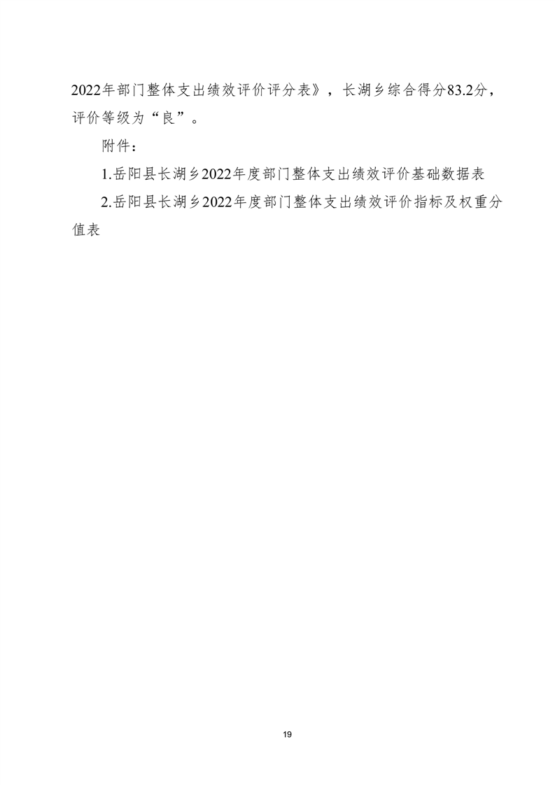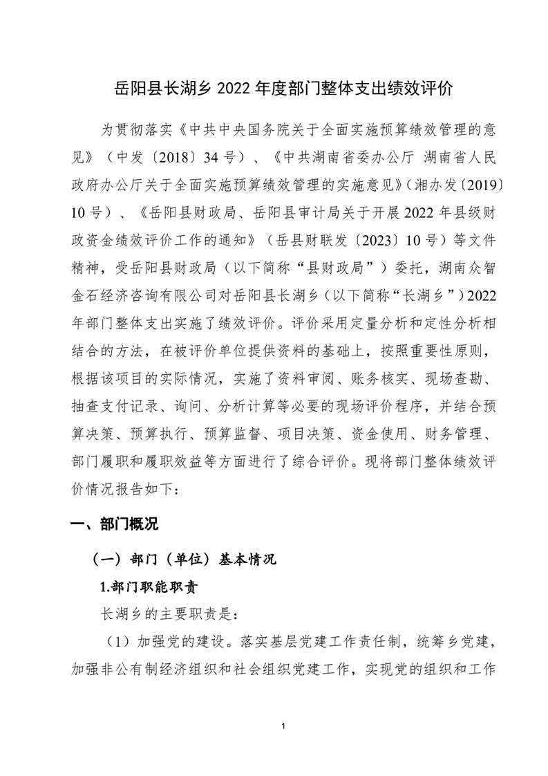 嶽陽縣長湖鄉2022年度部門整體支出績效評價報告