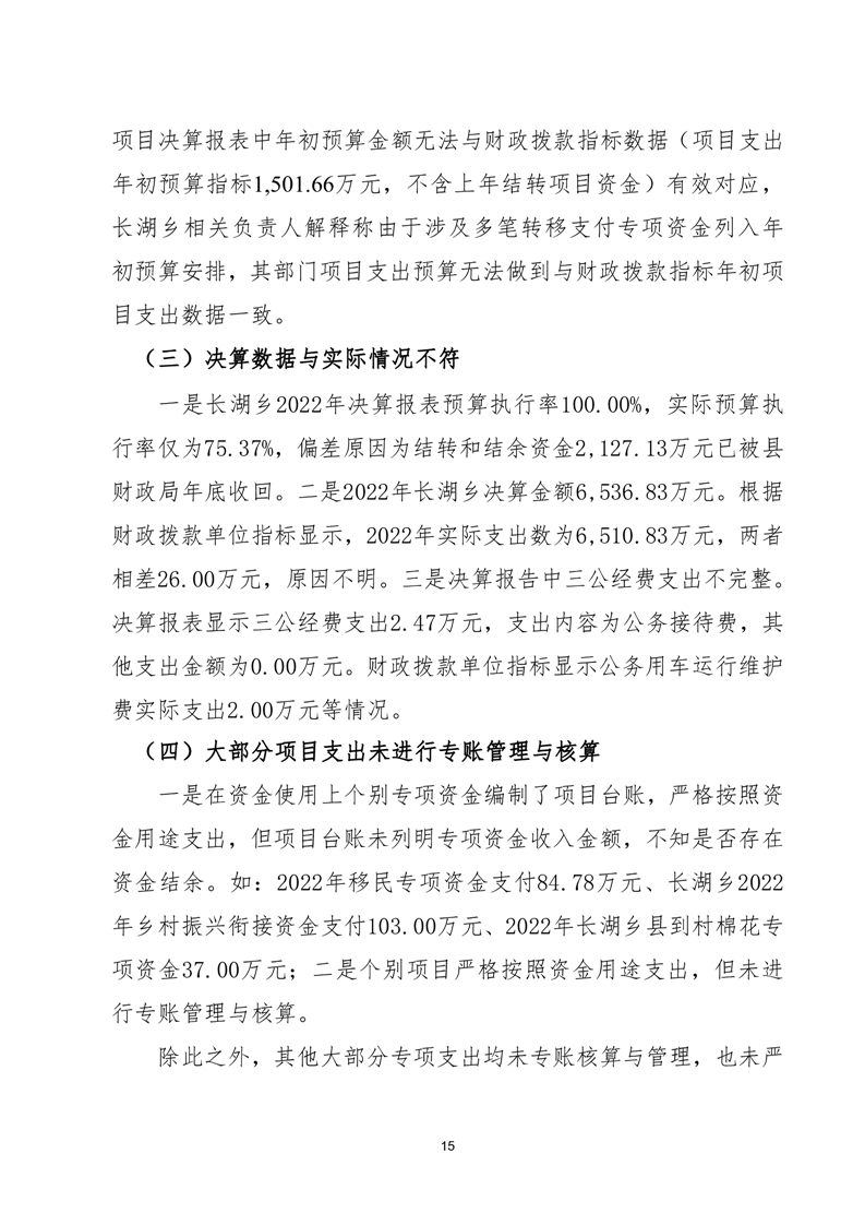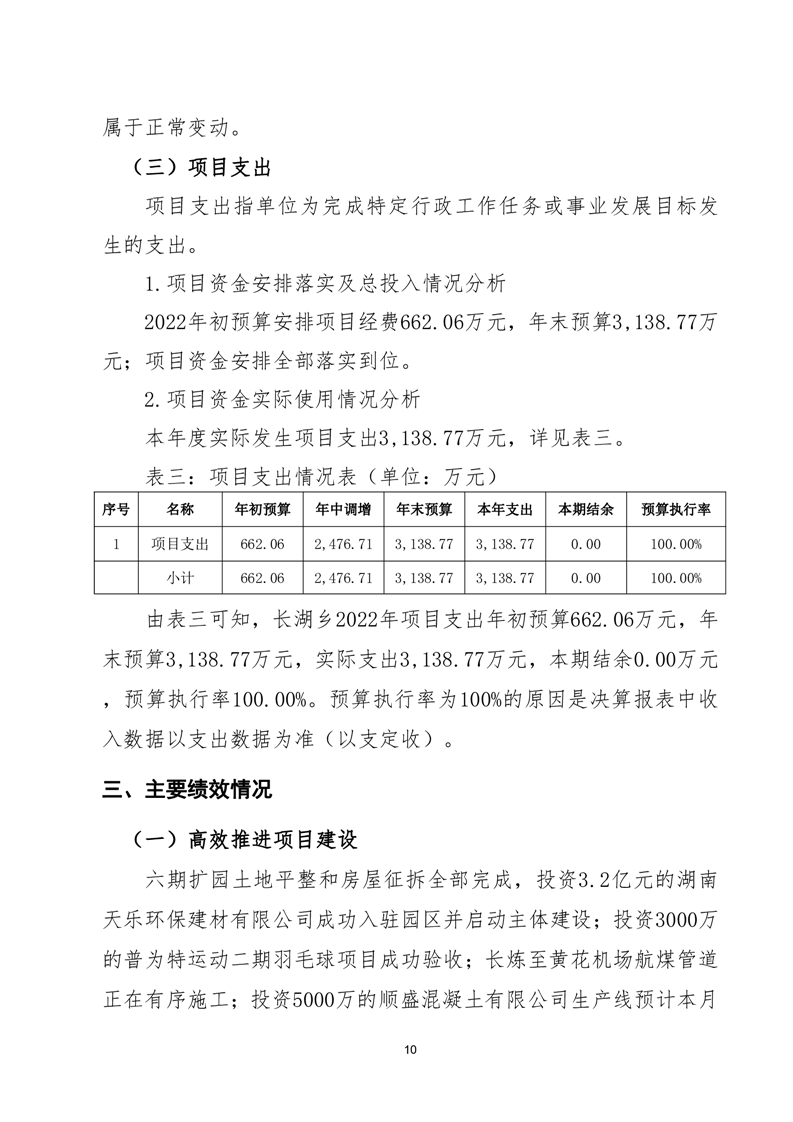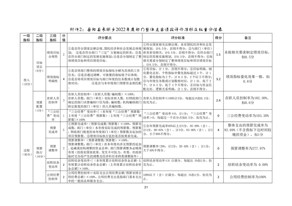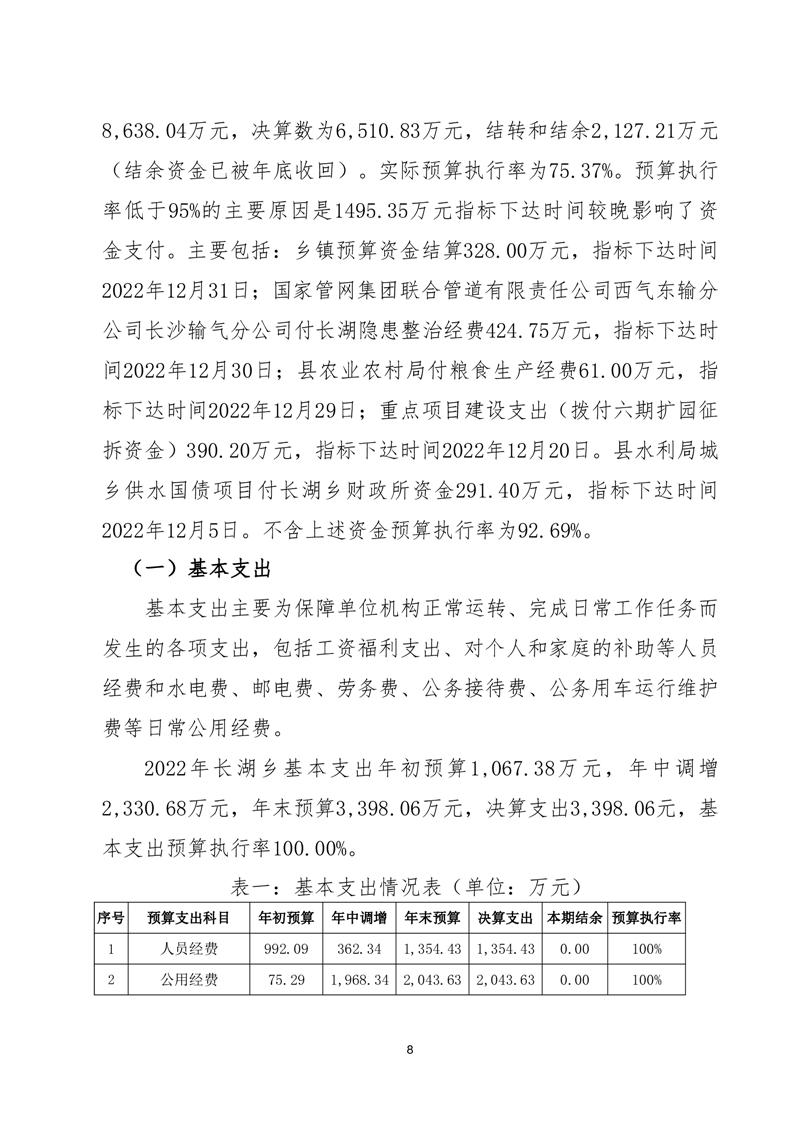 嶽陽縣長湖鄉2022年度部門整體支出績效評價報告