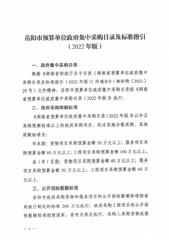 嶽陽市財政局關於印發《嶽陽市預算單位政府集中采購目錄及標準指引(2022年版)》的通知