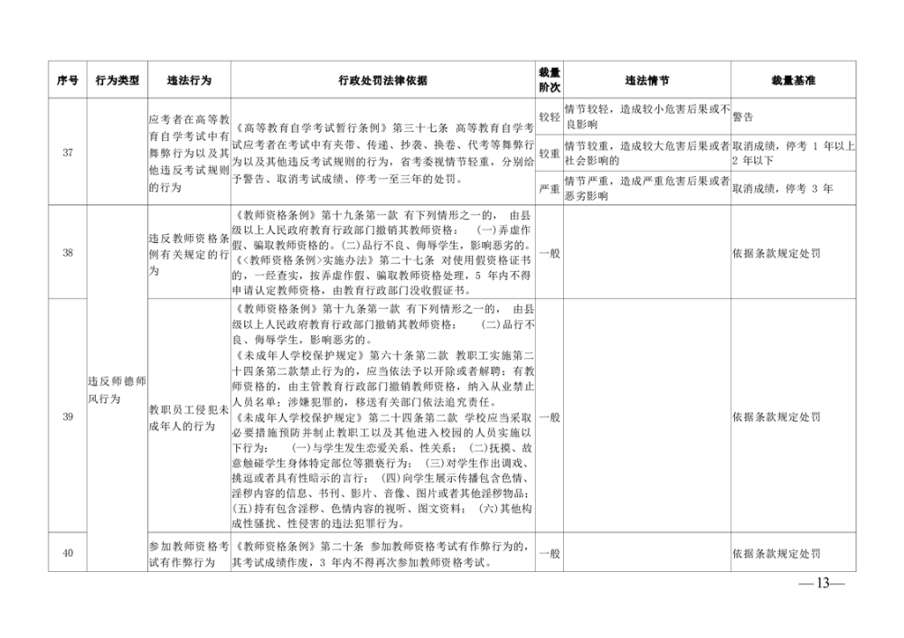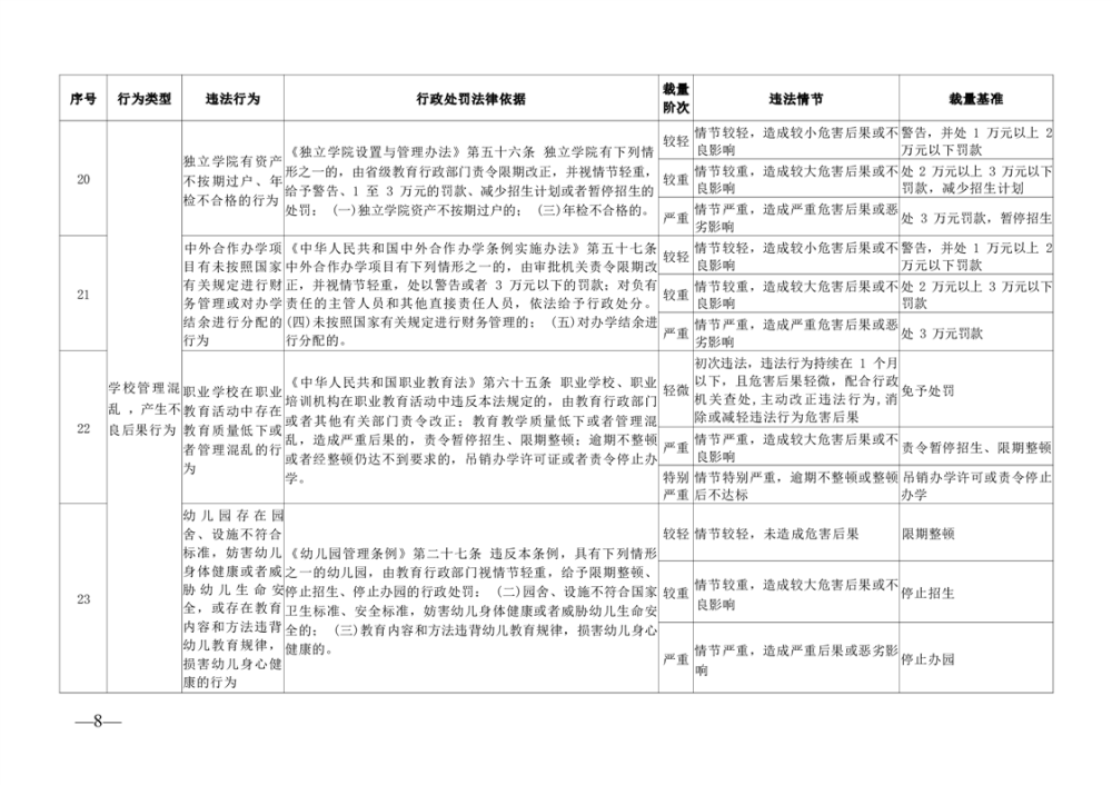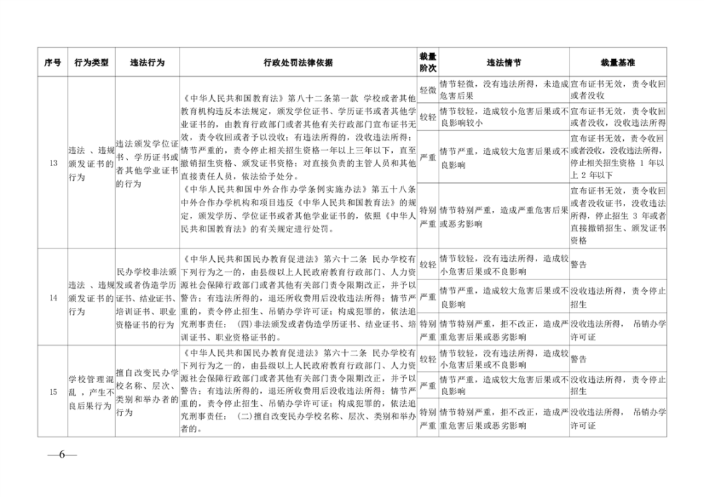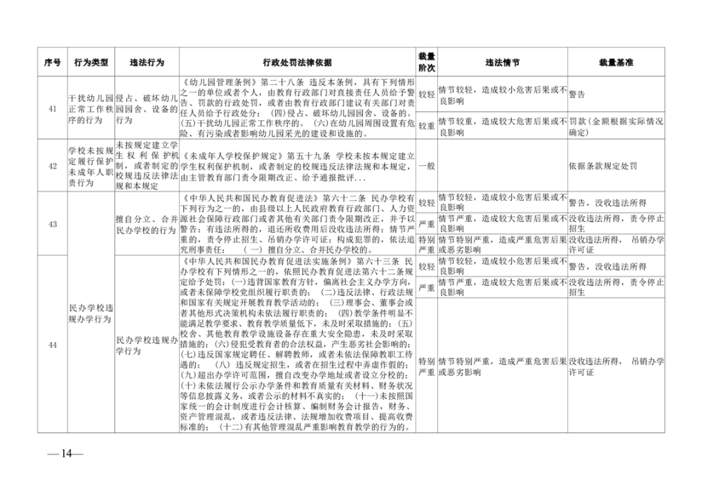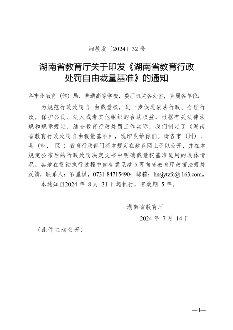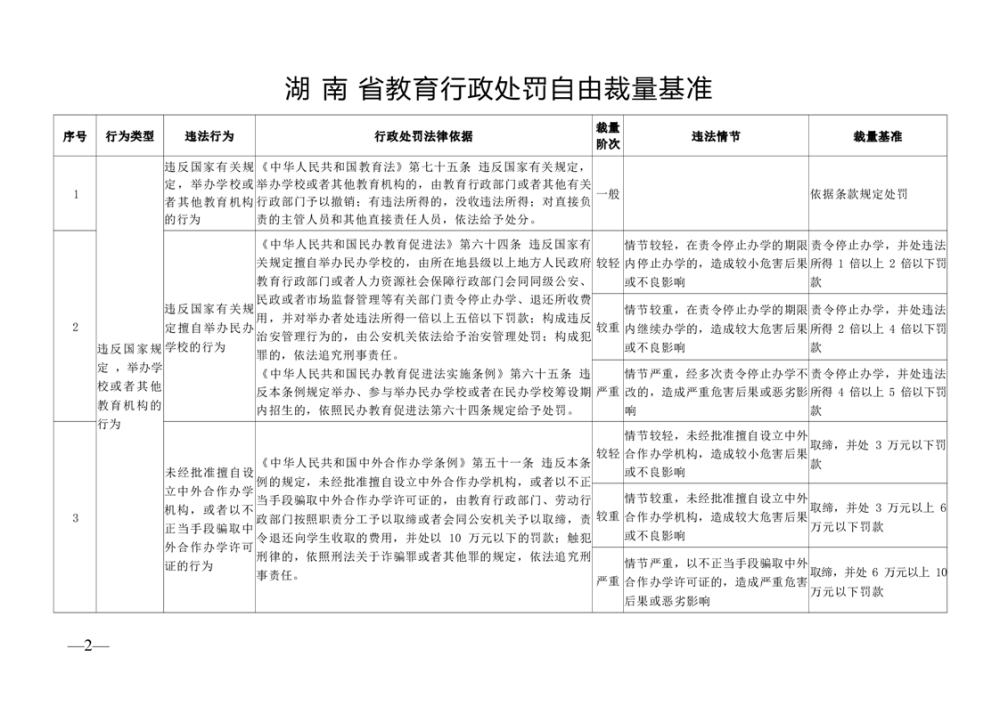 湖南省教育廳關於印發《湖南省教育行政 處罰自由裁量基準》的通知