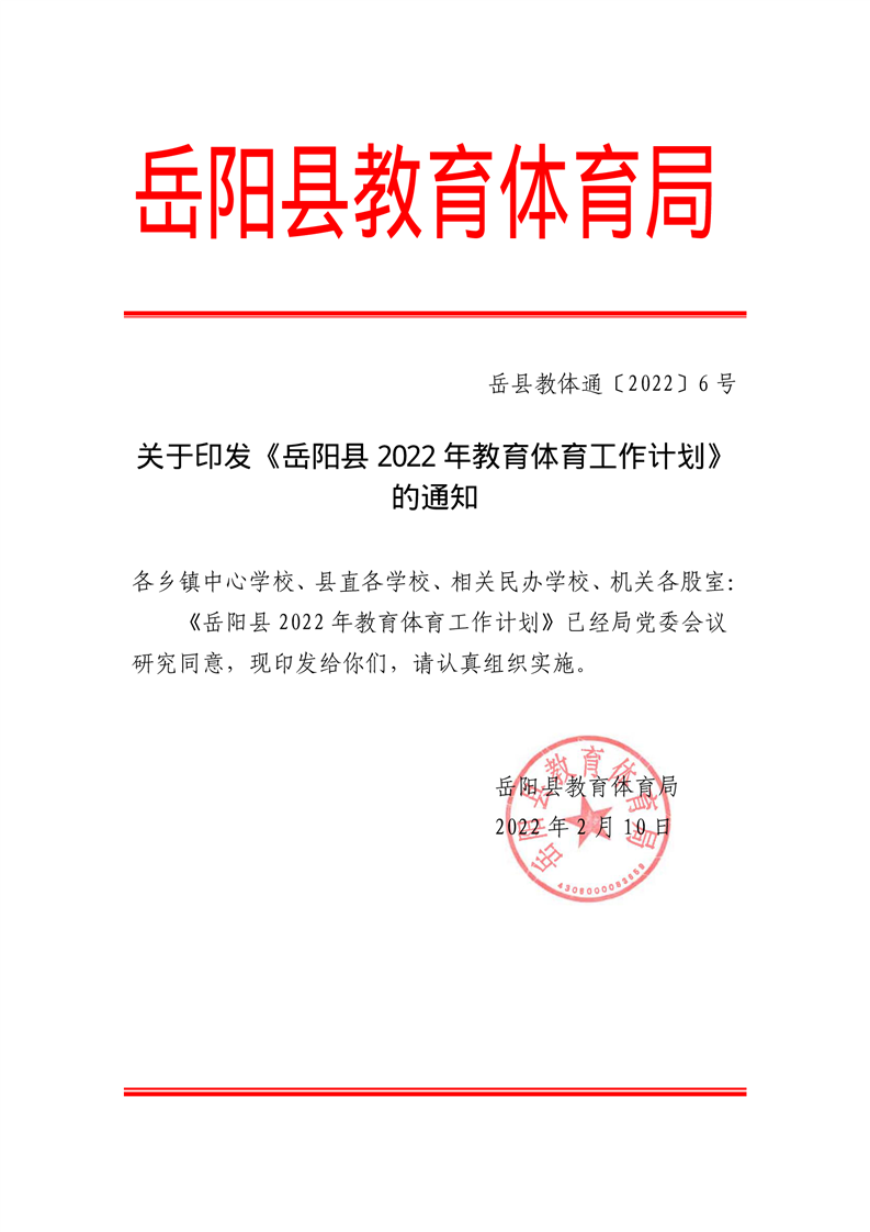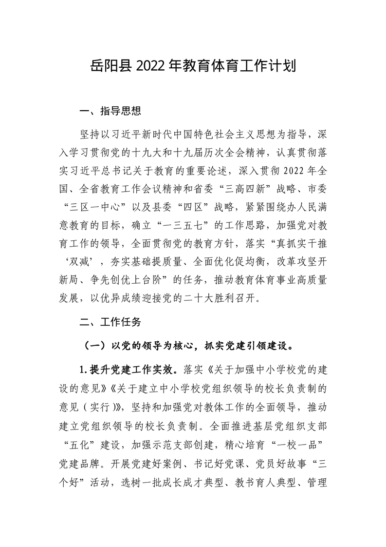 嶽陽縣2022年教育體育工作計劃