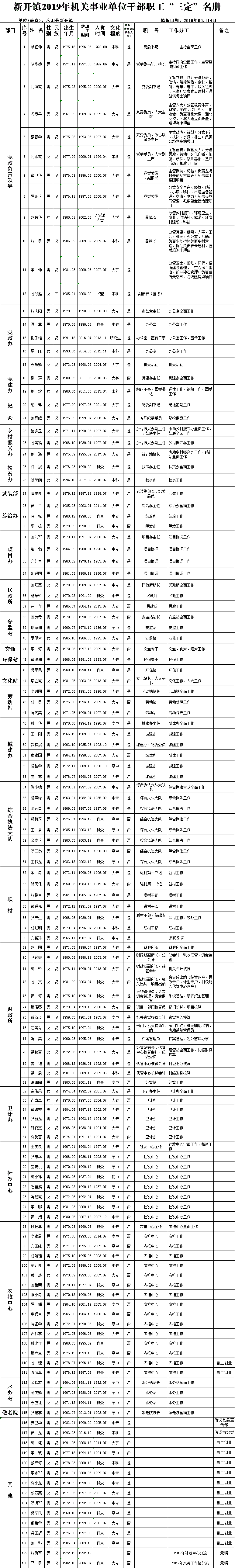 新開鎮2019年機關事業單位幹部職工“三定”名冊