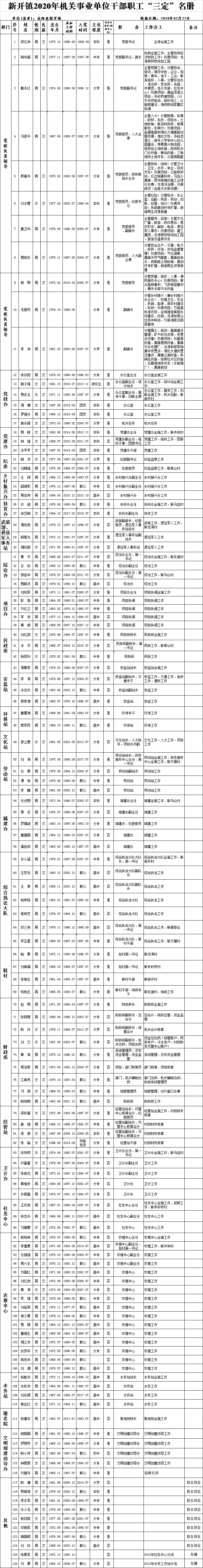 新開鎮2020年機關事業單位幹部職工“三定”名冊