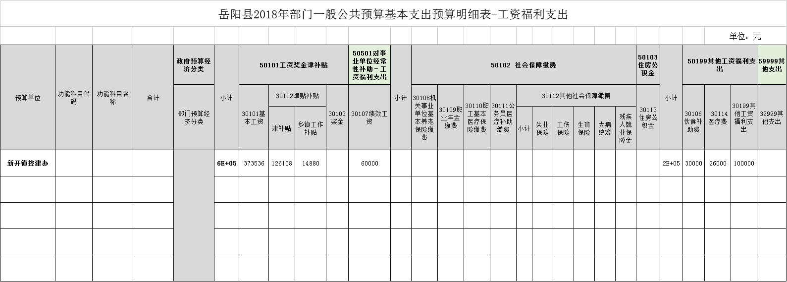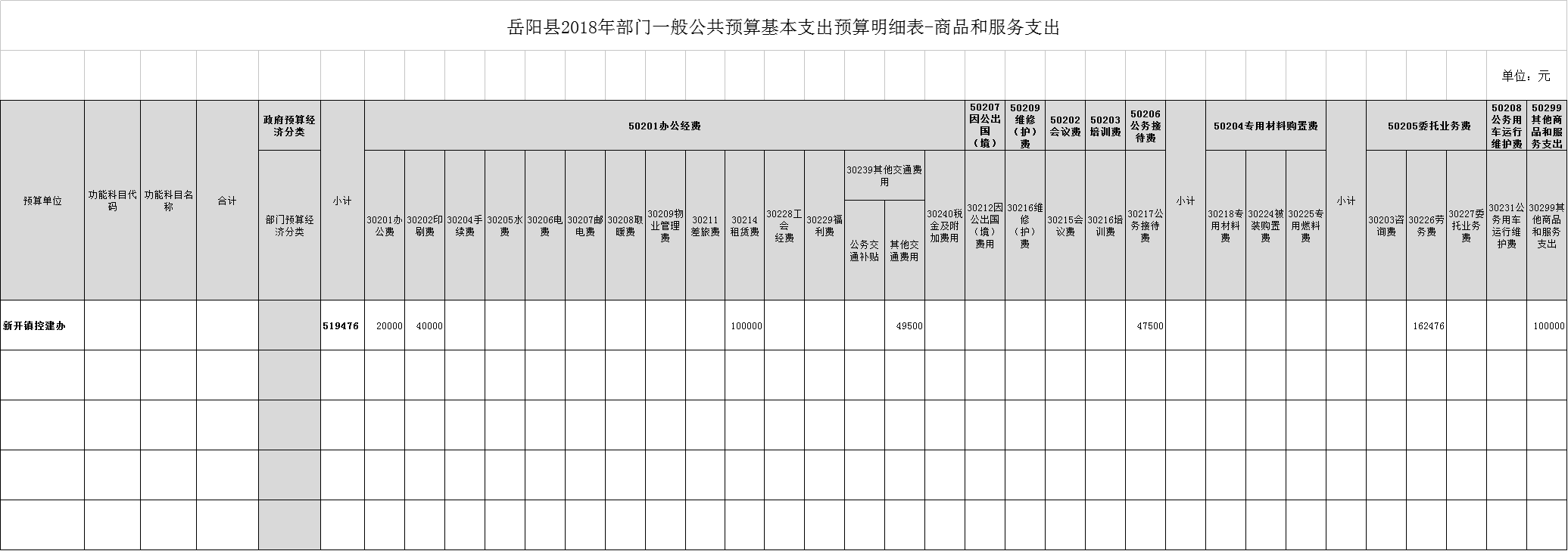 2018年新開鎮控建辦預算表