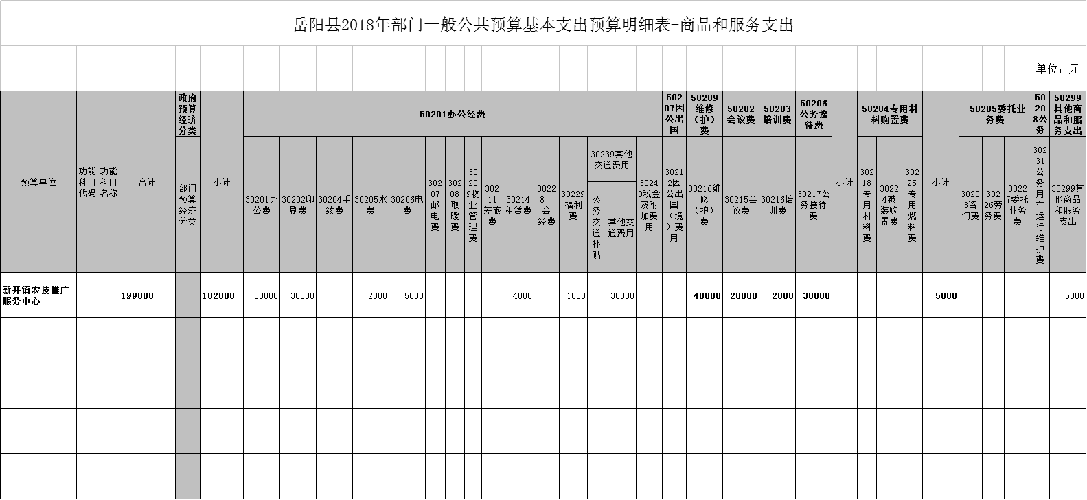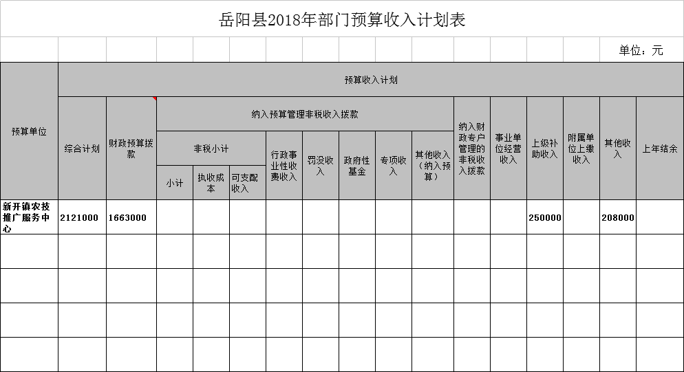 2018年新開鎮農推中心年度第二次預算