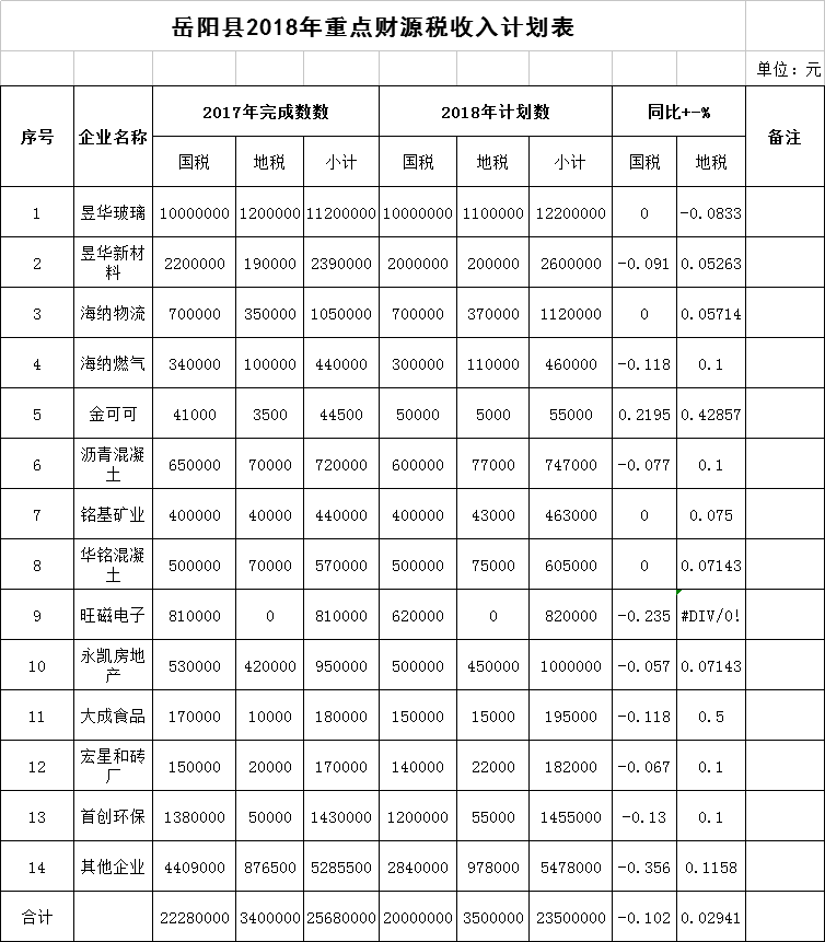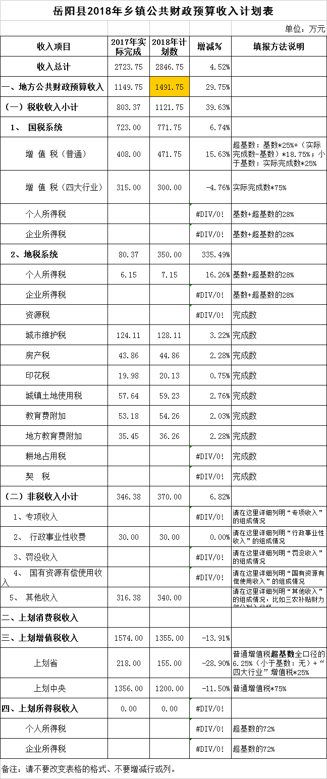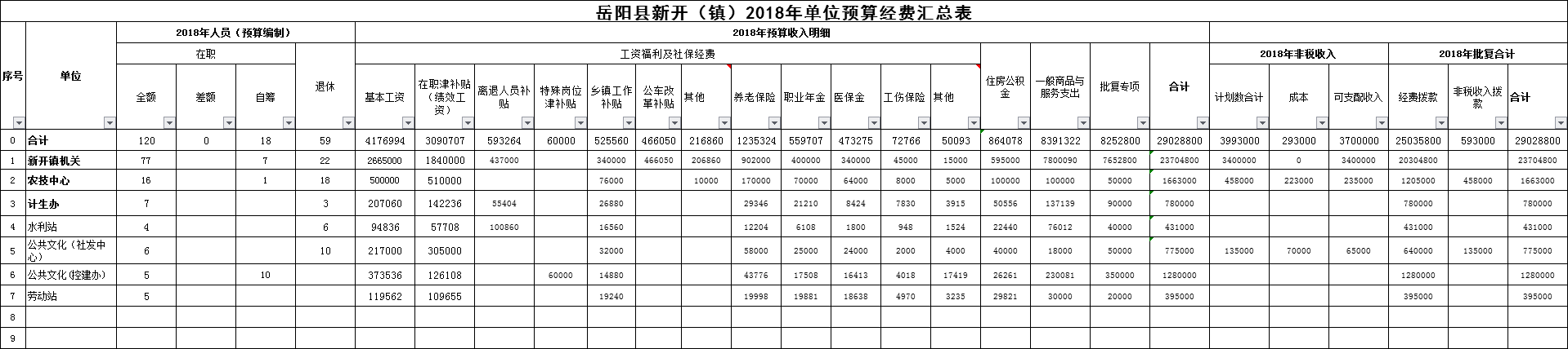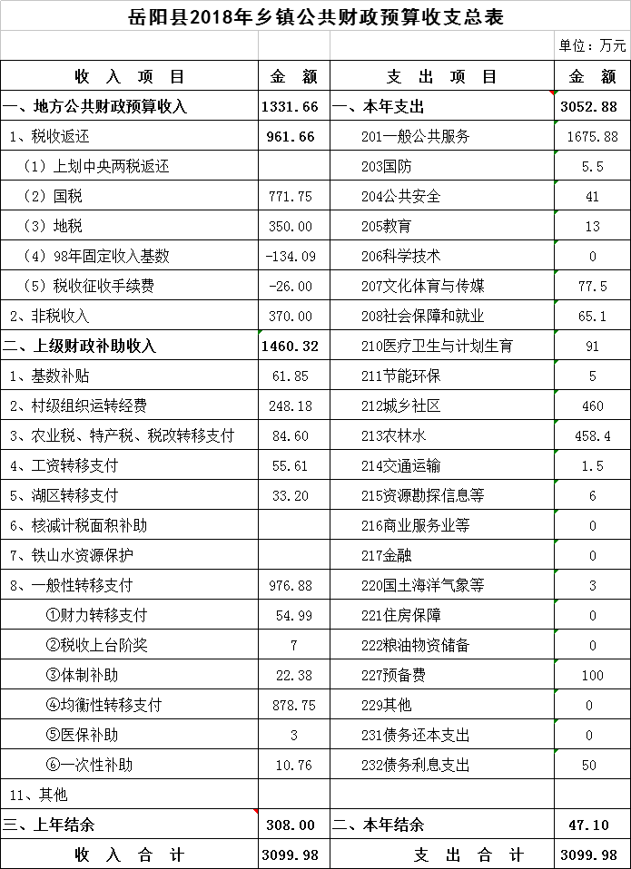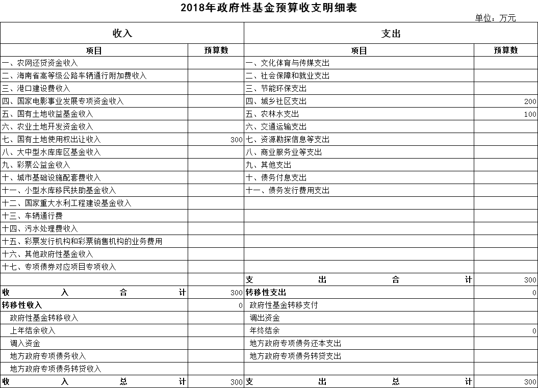 2018年新開鎮財政總預算表