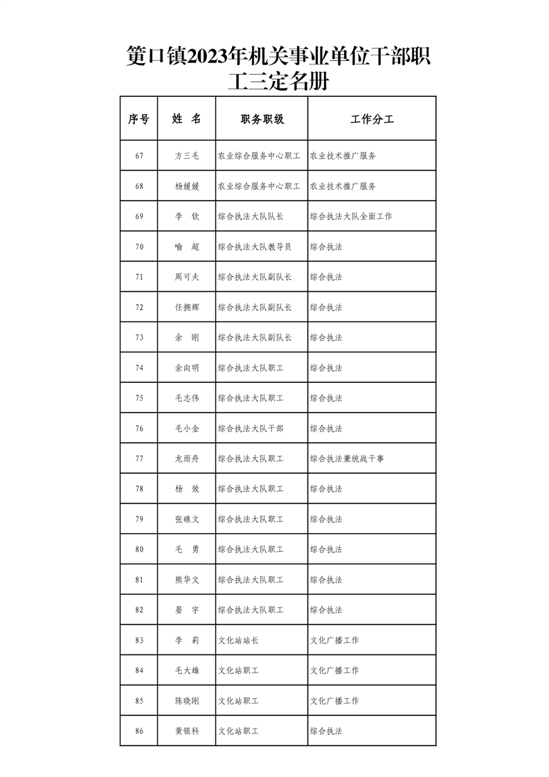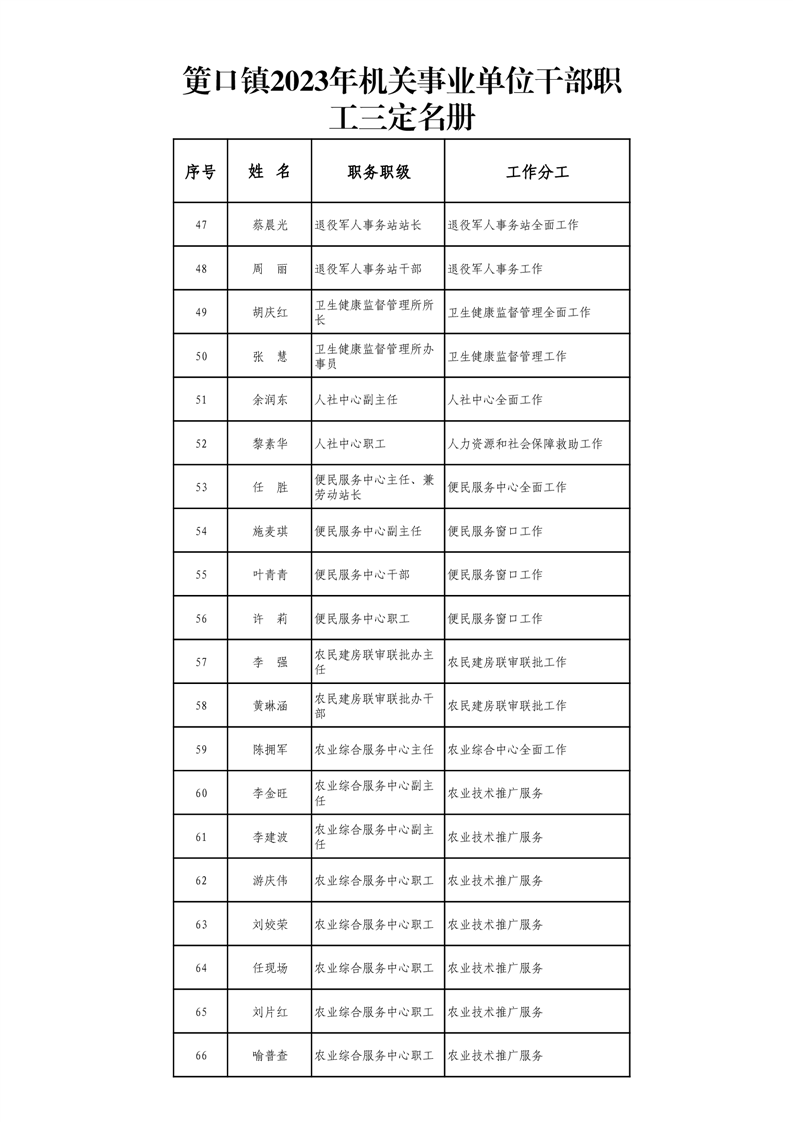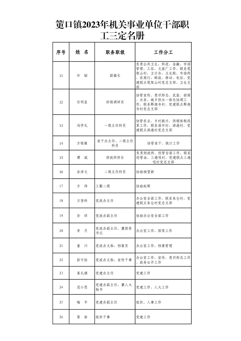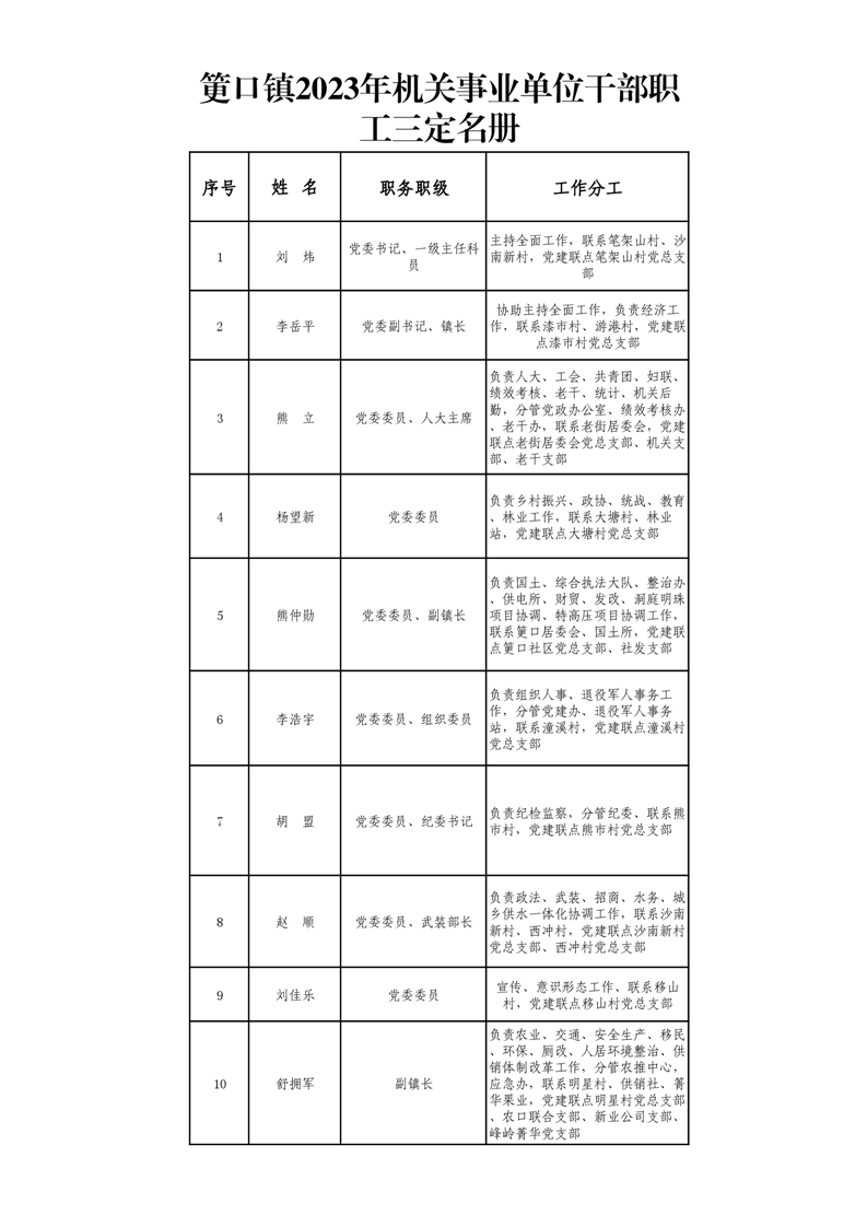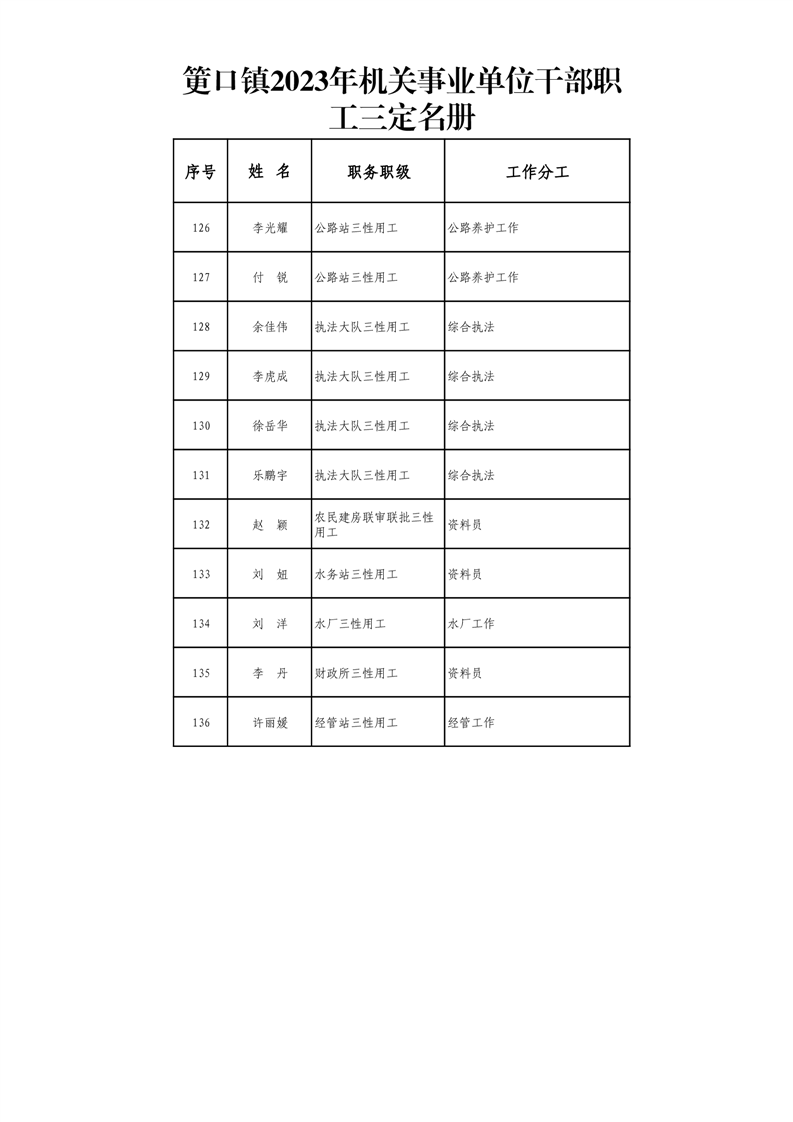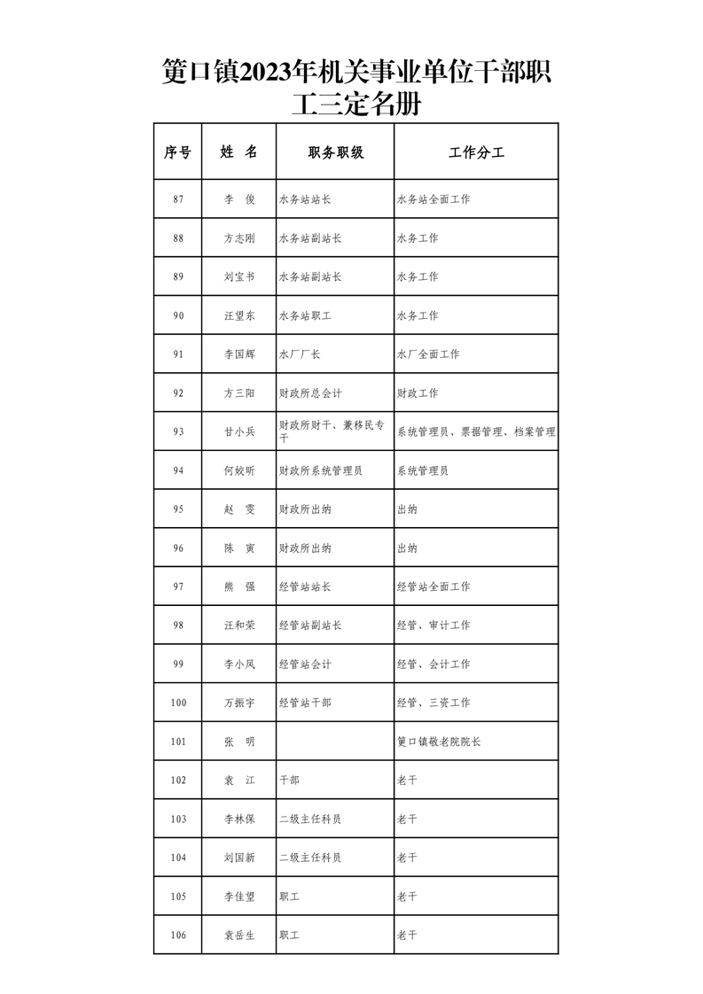 筻口鎮2023年機關事業單位幹部職工三定名冊
