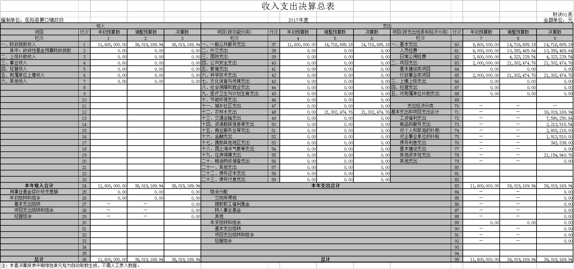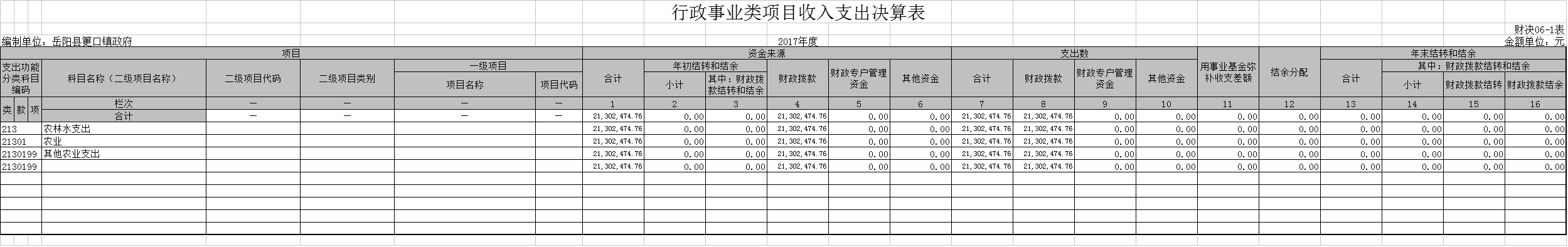 筻口鎮各項收支決算表