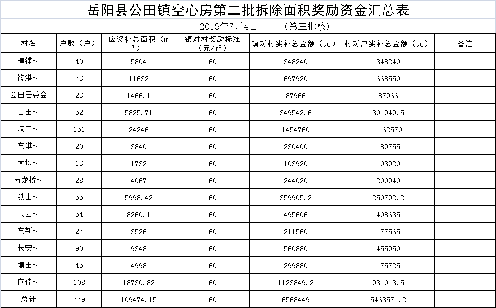 公田鎮空心房第三批數據匯總