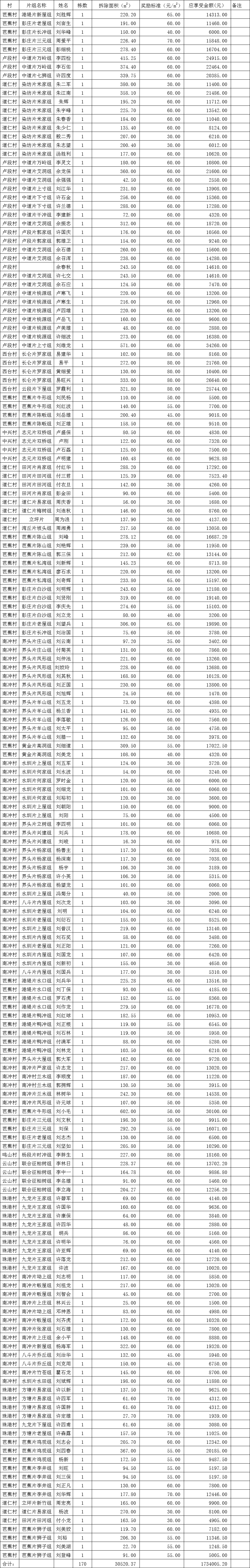 毛田鎮“空心房”整治明細表