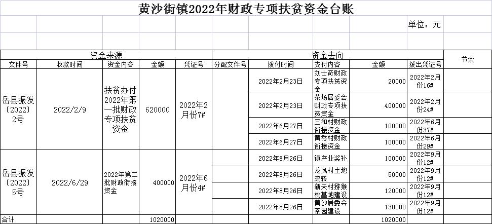 黃沙街鎮2022年財政專項扶貧資金台賬
