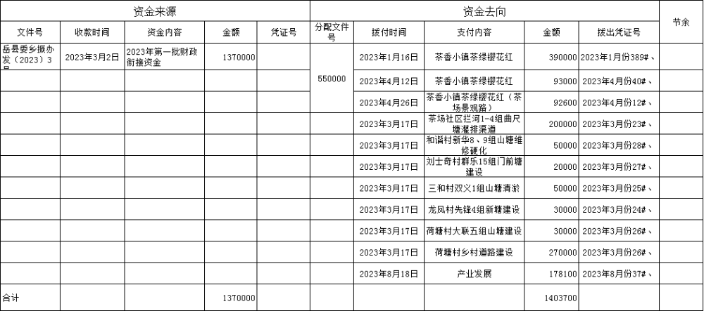 黃沙街鎮2023年財政專項銜接資金台賬