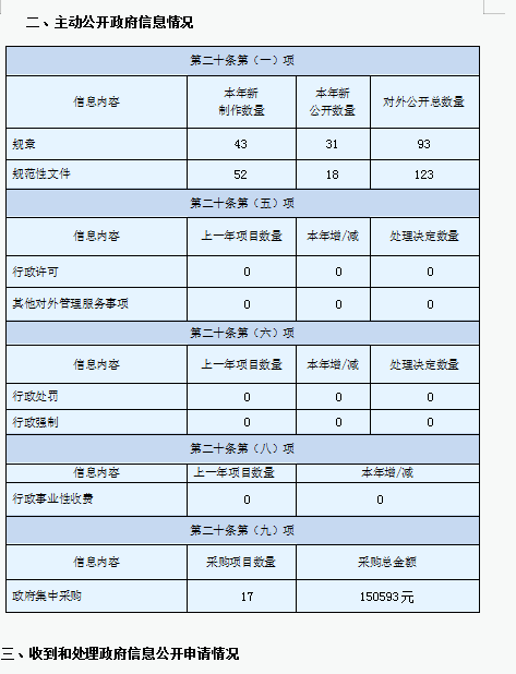 (二)主動公開政府信息情況