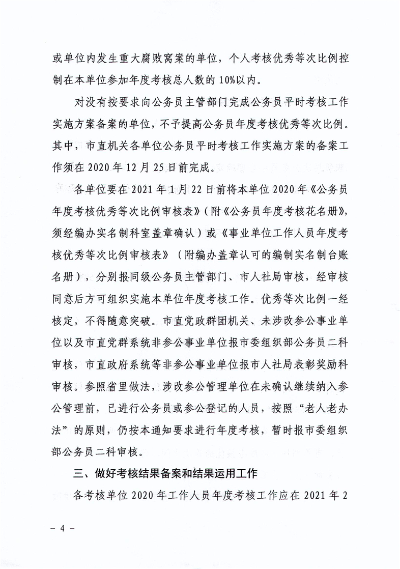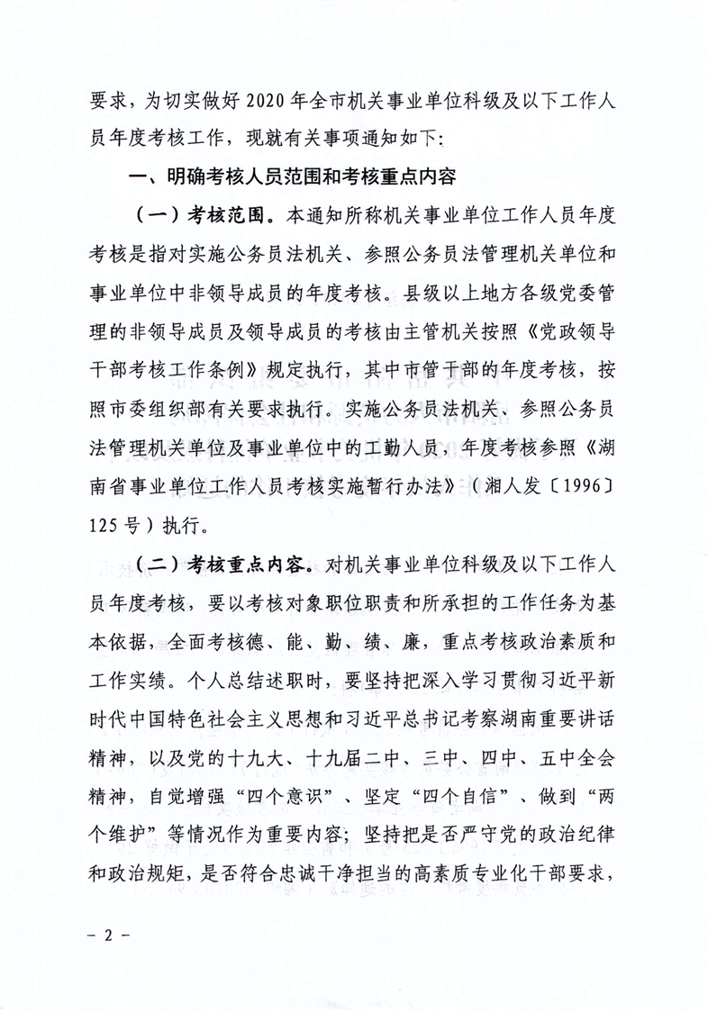 關於做好2020年機關事業單位科級及以下工作人員年度考核工作的通知