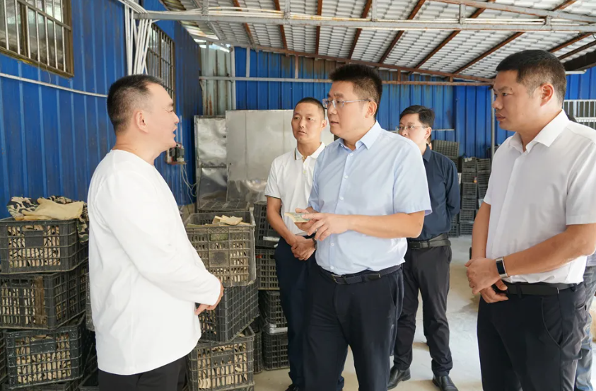 肖湘暉在大明山村雲龍竹業察看快板產業發展情況