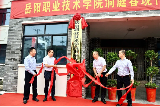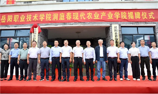 6月5日,嶽陽職業技術學院洞庭春現代農業產業學院揭牌儀式在嶽陽縣黃沙街茶葉示範場舉行。副市長張世愚出席並揭牌,縣委常委、縣委辦主任王靖,縣委常委、常務副縣長童勳海及嶽陽職業技術學院、縣農業農村局相關負責人參加。
