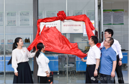 4月20日,湖南農業大學化學與材料科學學院組隊赴嶽陽縣湖南田味農業科技有限公司考察交流,並在此舉行“湖南省研究生拔尖創新人才聯合培養基地”和“湖南嶽陽智慧育秧科技小院”揭牌儀式。化材學院院長喻鵬、研究生院副院長歐立軍、嶽陽縣科協主席胡光霞,聯合培養基地、科技小院負責人夏茂及企業負責人董敏芳共同揭牌 。