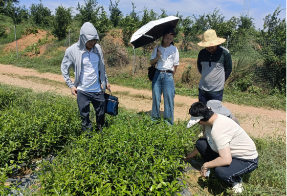 專家組先後深入新牆鎮新華村育苗基地、柚香苑水肥一體化示範基地和九馬咀示範園調研,了解金盆柚苗木長勢情況,指導剪枝、施肥、除草、病蟲害防治。隨後應邀參加由縣農業農村局組織的嶽陽金盆柚標準化種植研討會,與部分種植大戶、協會負責人、企業家、土專家和田秀才麵對麵交流,深入討論有關金盆柚良種選育、標準化種植、精深加工、品牌營銷等全產業鏈專業知識,推動我縣金盆柚產業高質量發展。