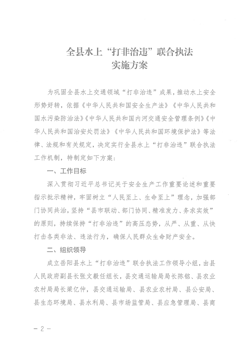 嶽陽縣水上“打非治違”聯合執法實施方案