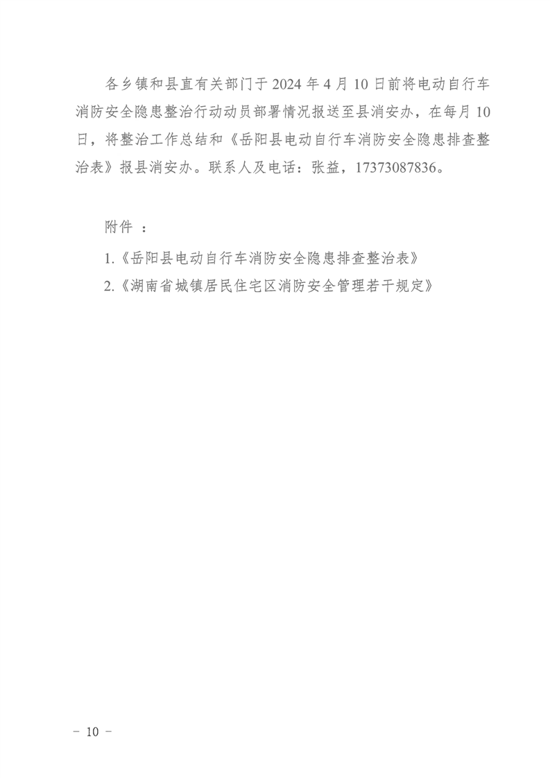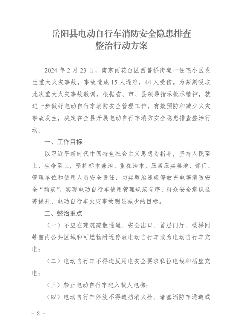 嶽陽縣電動自行車消防安全隱患排查整治行動方案