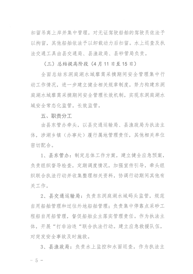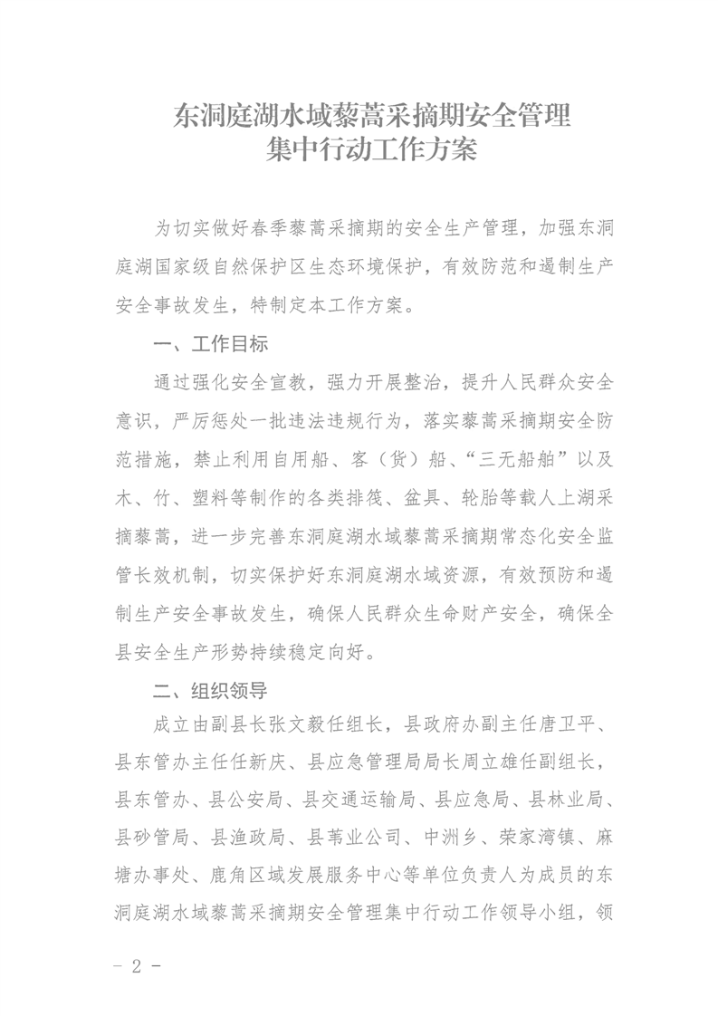 東洞庭湖水域藜蒿采摘期安全管理集中行動工作方案