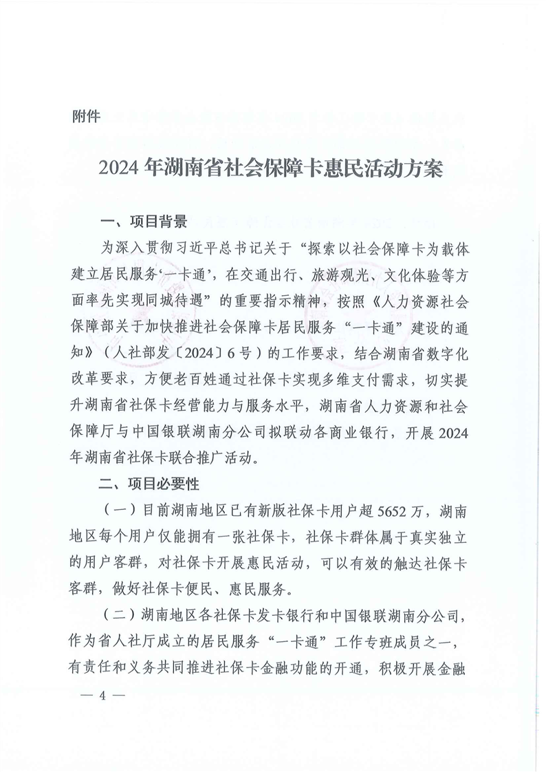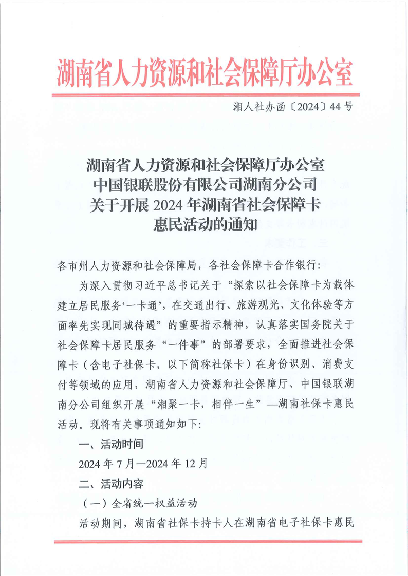 關於開展2024年湖南省社會保障卡惠民活動的通知