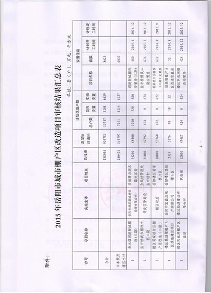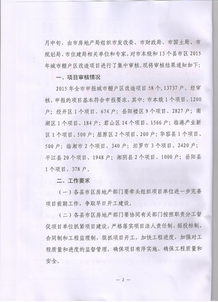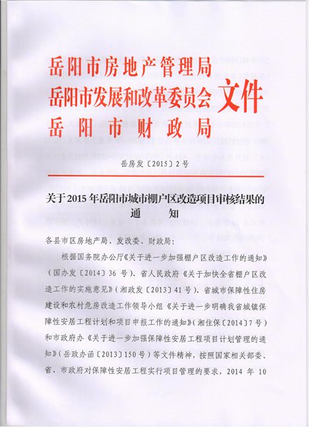 嶽陽市2015年城市棚戶區改造項目審核結果