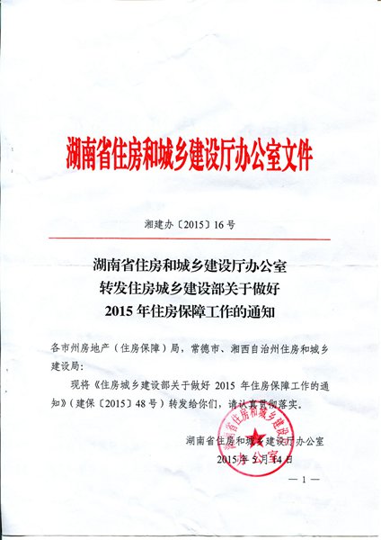 湖南省住房和城鄉建設廳轉發住房和城鄉建設部關於做好2015年住房保障工作的通知