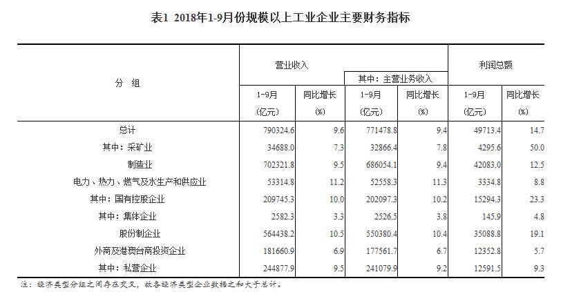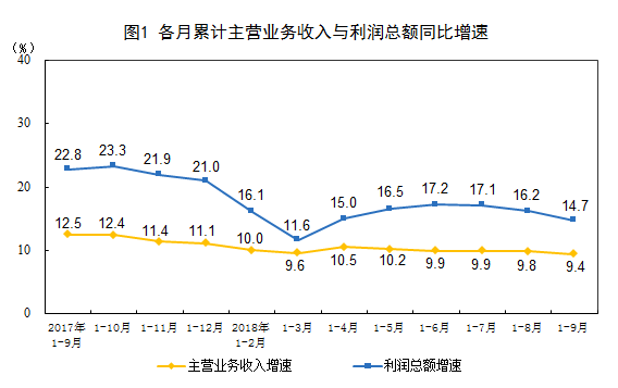 2018年1-9月份全國規模以上工業企業利潤增長14.7%