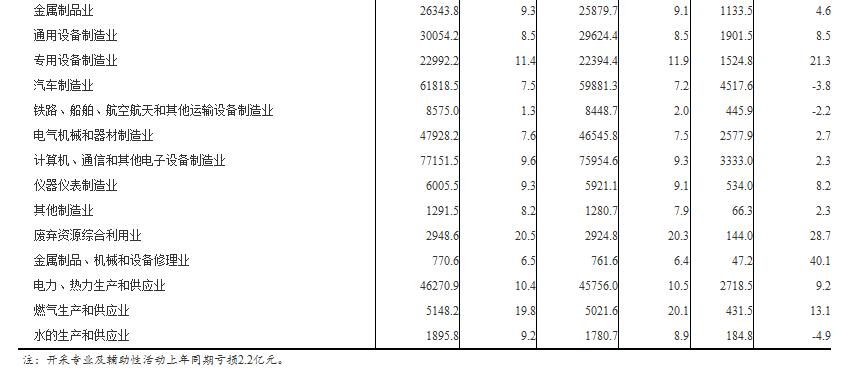 1-9月份,采礦業實現利潤總額4295.6億元,同比增長50%;製造業實現利潤總額42083億元,增長12.5%;電力、熱力、燃氣及水生產和供應業實現利潤總額3334.8億元,增長8.8%。